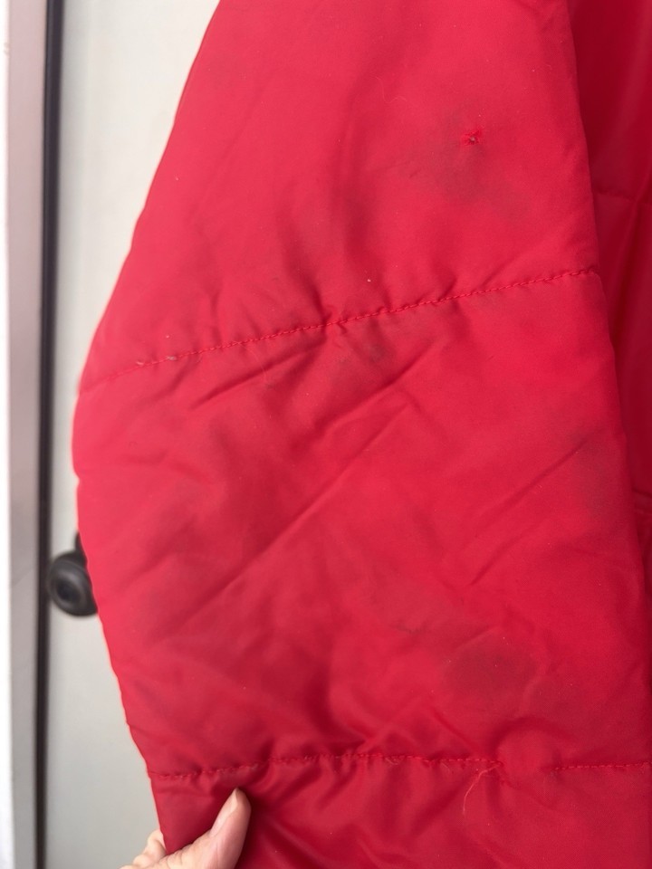 Vintage MANITOWAC Swingster Puffy Red Bomber Jacket Nylon USA Workwear Lg