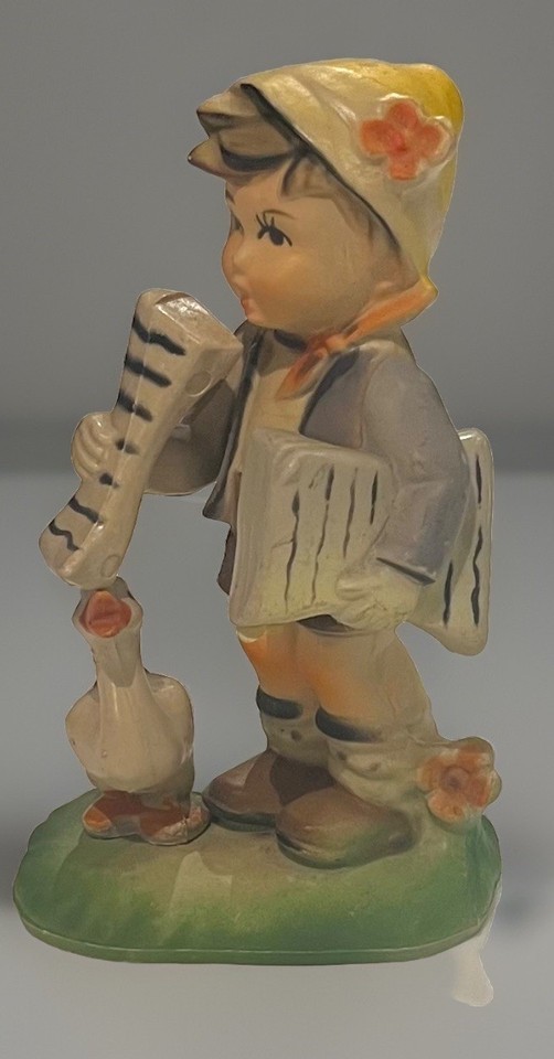 Old VINTAGE 4.5? German boy and goose/duck. Made in Hong Kong. Plastic Hummel like piece. Great condition!! Excellent color and detail. Very nice!!