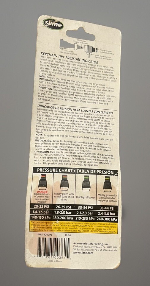 New in package. This is a Tire Pressure Gauge KEYCHAIN!! Package is in okay condition, but item is brand new!! Comes as pictured!!!