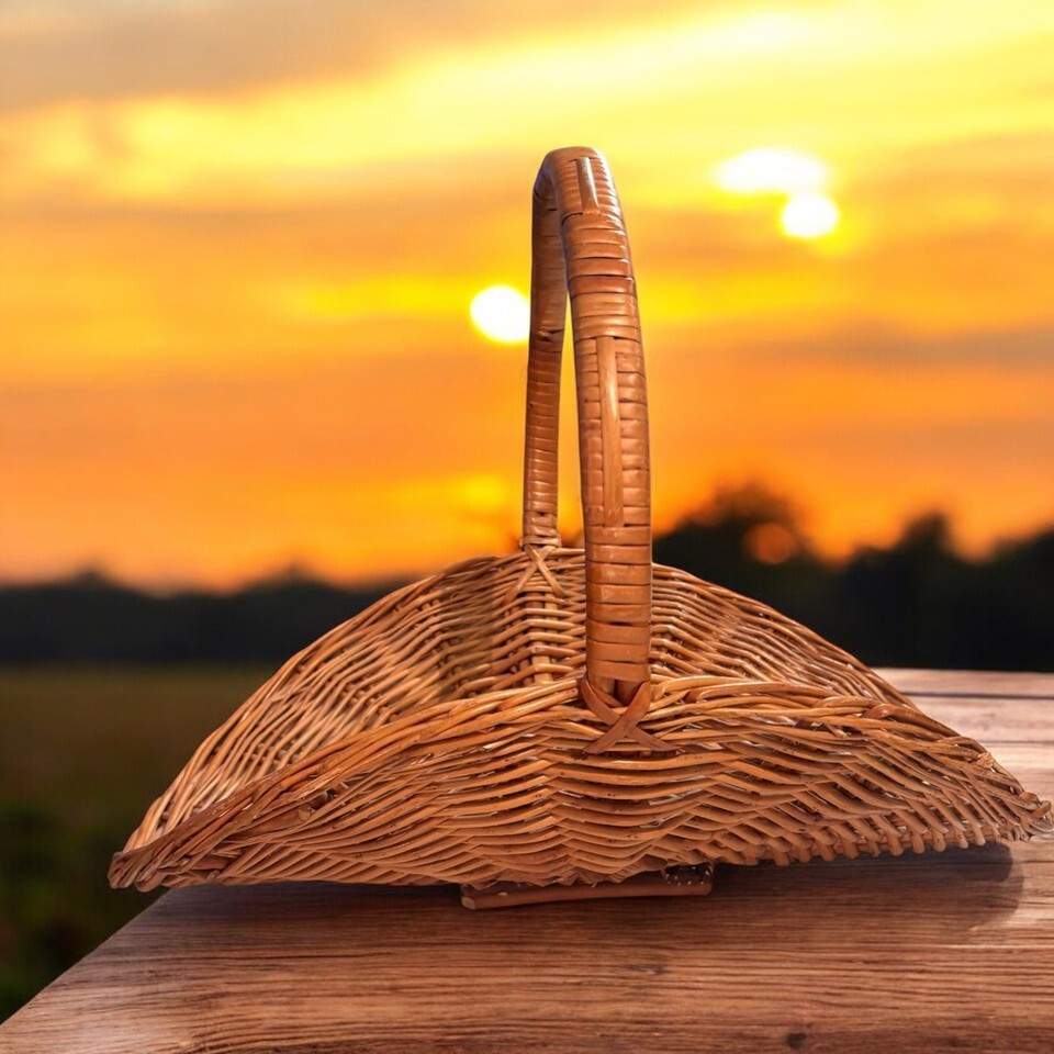 XL Vintage Wicker Gathering Basket Herb Flower Garden French Country Style Wood
