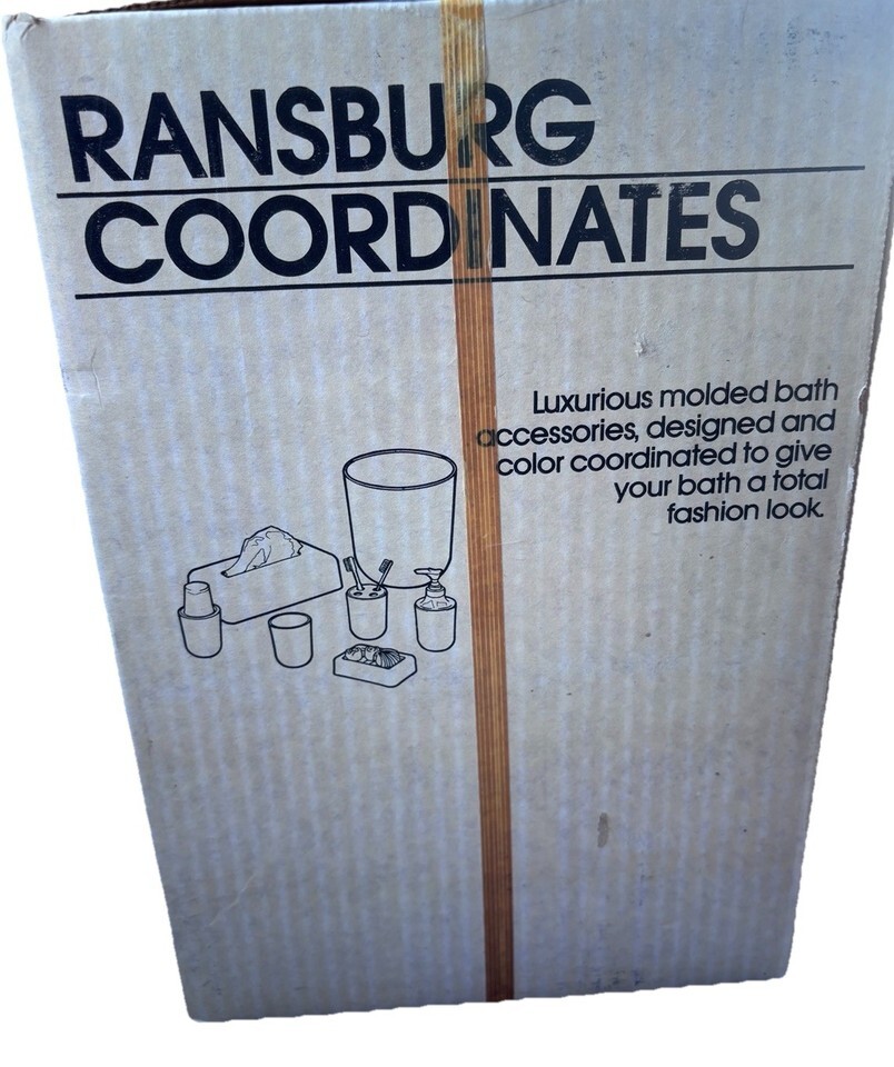 Vintage Ransburg 7pc Bathroom Set Waste Can Tissue Box Soap Holder Cups Mod