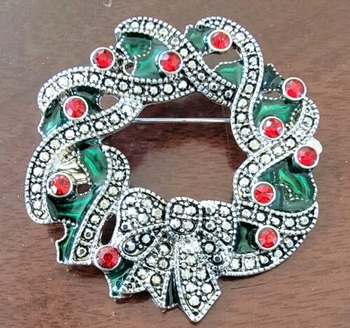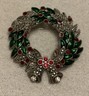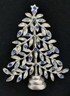 Kenneth Cole Silver Tone & Blue Rhinestone Decorated Christmas Tree Pin Brooch