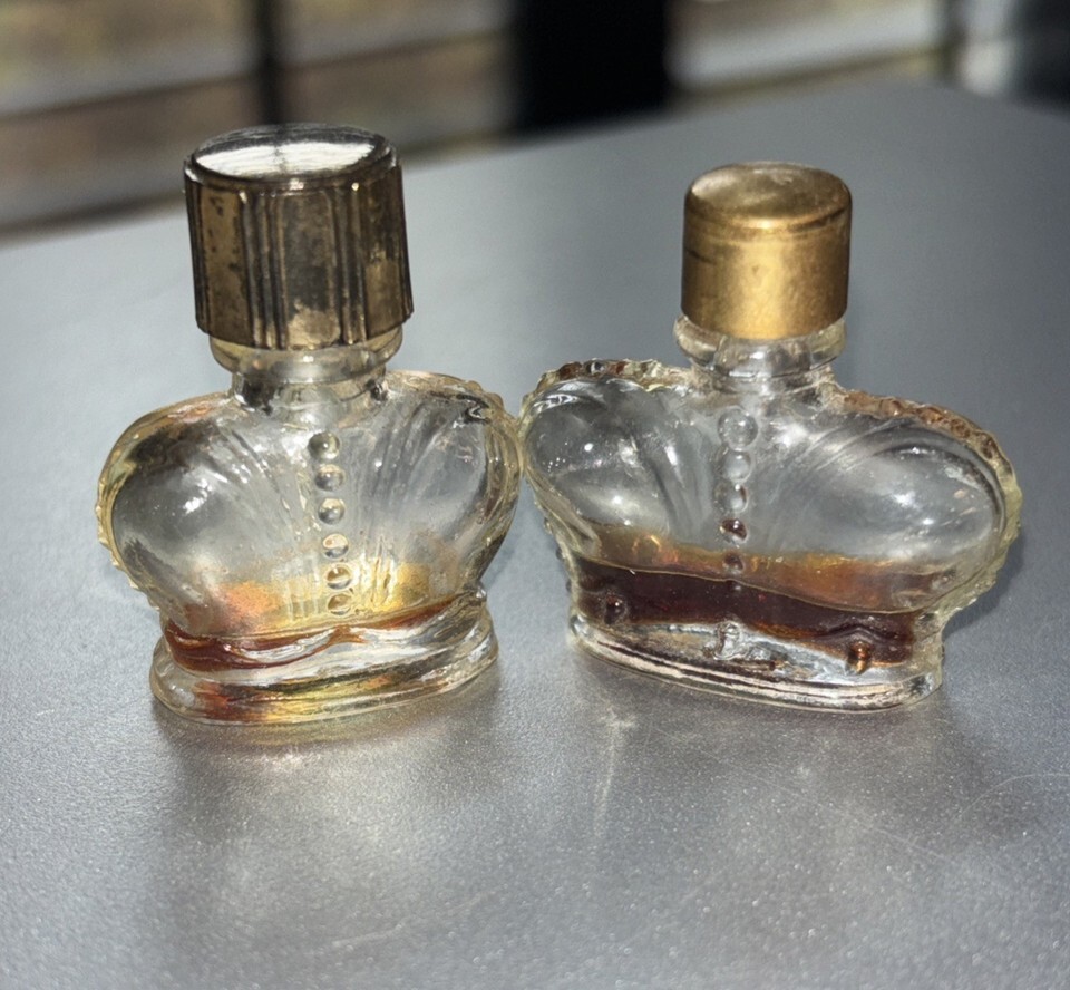 2 Vtg 60s Wind Song Prince Matchabelli Parfum Mini Crown Sample Perfume Bottles