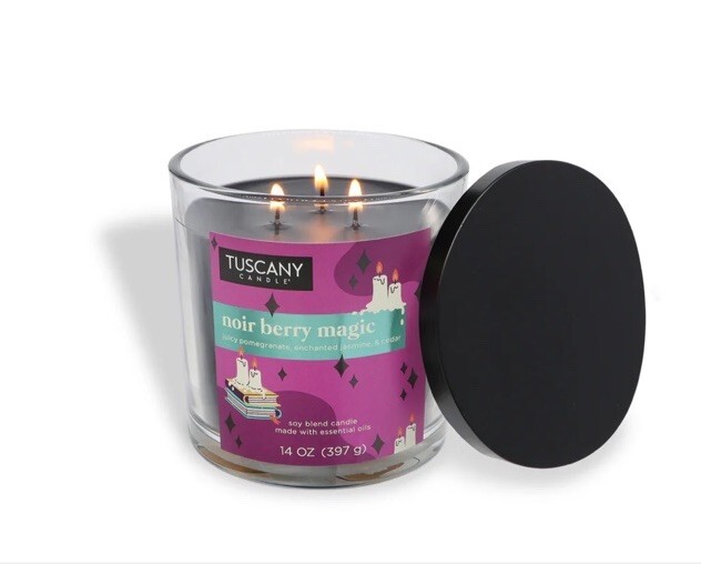 TUSCANY Candle Noir Berry Magic Halloween Essential Oils 14 Oz Ltd Ed. Leaves