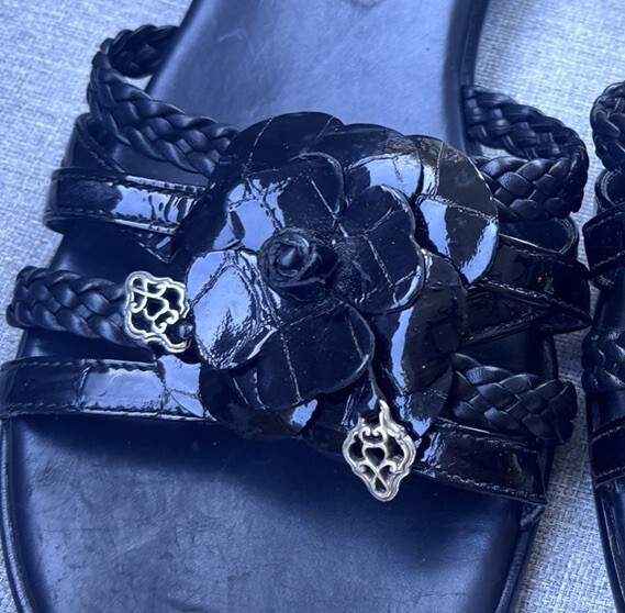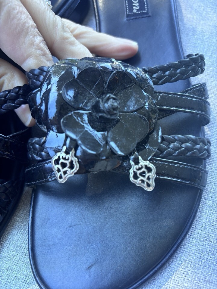 Pre-loved Partner Brighton Slide Mule Sandals Sz 8.5 Black Leather Braided W...