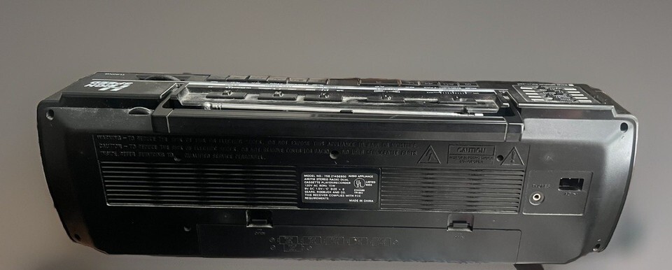 Radio works great! Antenna is in tact and works great. Tape player moves with function buttons but I don?t have a tape to test this feature. Battery compartment is clean and original battery cover is with it. I used a similar type of power cord to test this? I don?t have the power cord. Also works with ?C? batteries. Manufactured late 80?s early 90?s By looks of the color of the stripes on the front. Not sure of the SR 2000 label or not??? The model number is the exact model. I have not been able to find an exact match of this boombox?. I am assuming it is fairly rare?. Take a look at the pictures?.