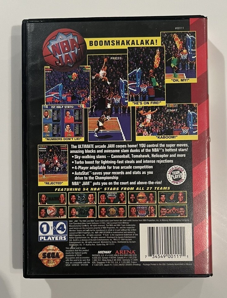NBA Jam (Sega Genesis, 1994) Complete! Manual, Artwork, Case, Cartridge - WORKS!