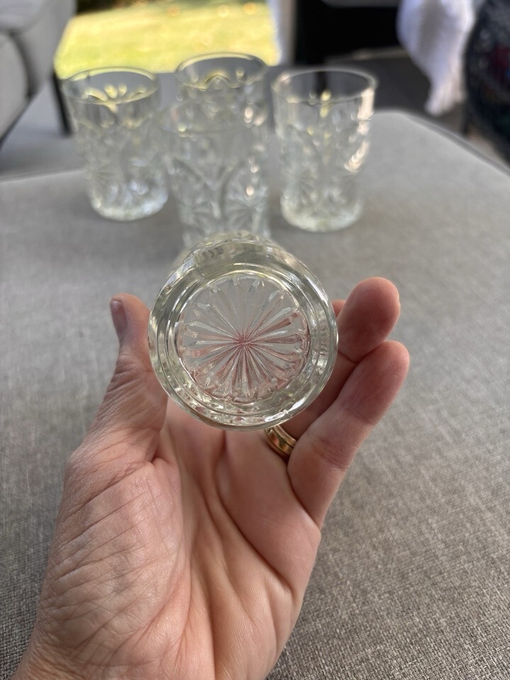 5 Vintage 3.5" Tumblers Antique Indiana Glass Oval Star Clear Juice Pressed