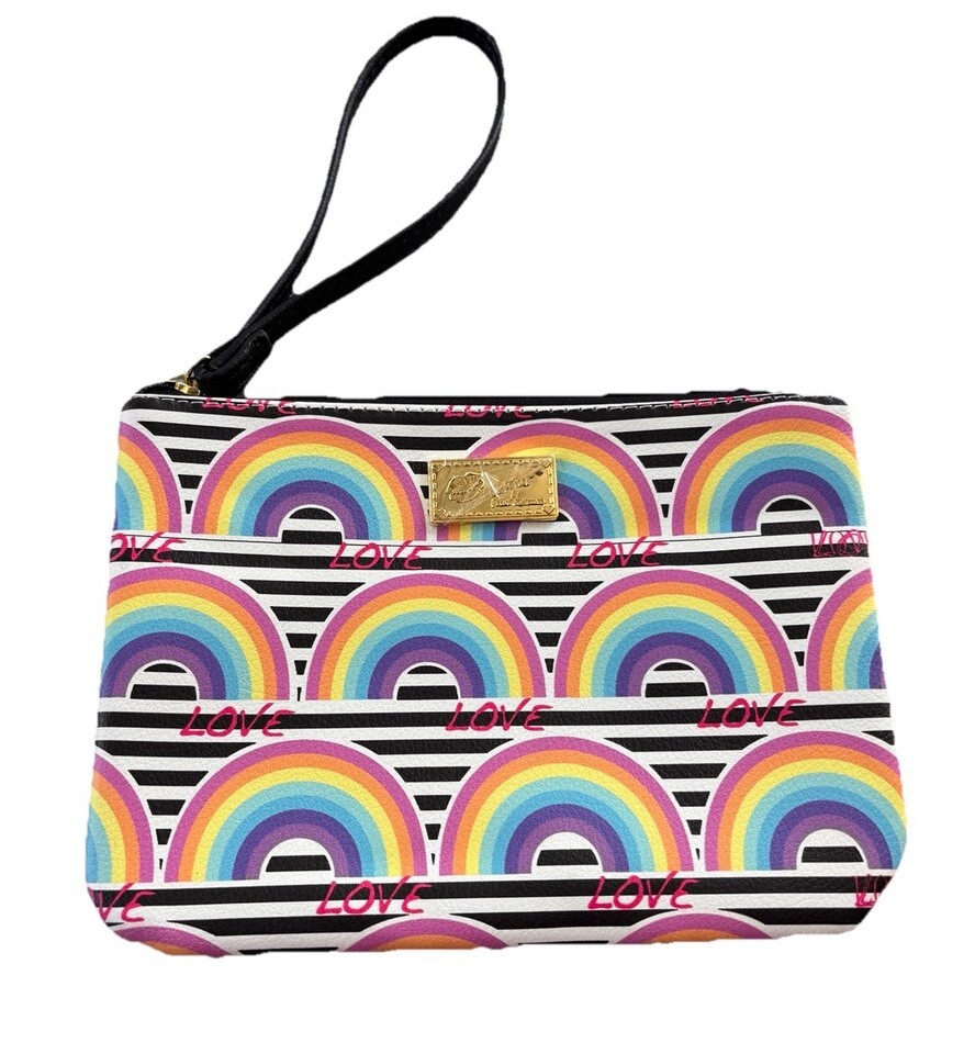 NWOT Betsey Johnson Luv Betsey Rainbow Print Wristlet & Crossbody Bag - LOVE