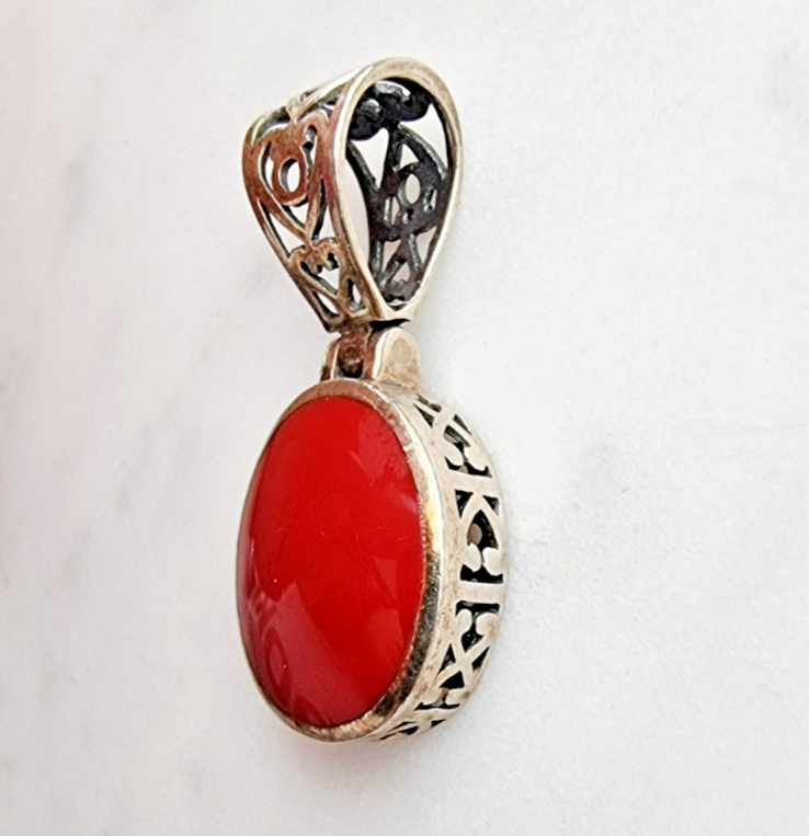 SILPADA 925 STERLING SILVER RED 17x15 mm OVAL JASPER FILIGREE DANGLE PENDANT