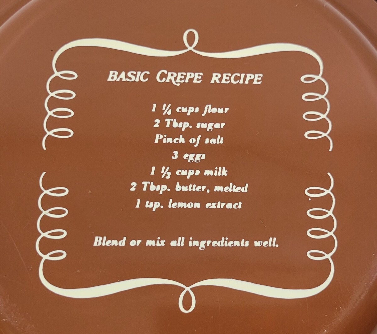 Vintage Basic Crepe Recipe Kitchen Decor Brown Round Metal Dish Pan