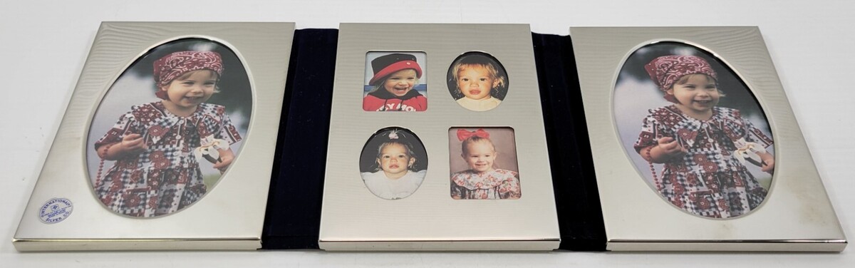 MM) International Silver Company Silver Tone Triple Slide Tabletop Photo Frame