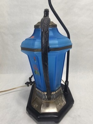 Antique Frosted Blue Satin Glass Samovar Lamp Peacock Cambridge Paden City