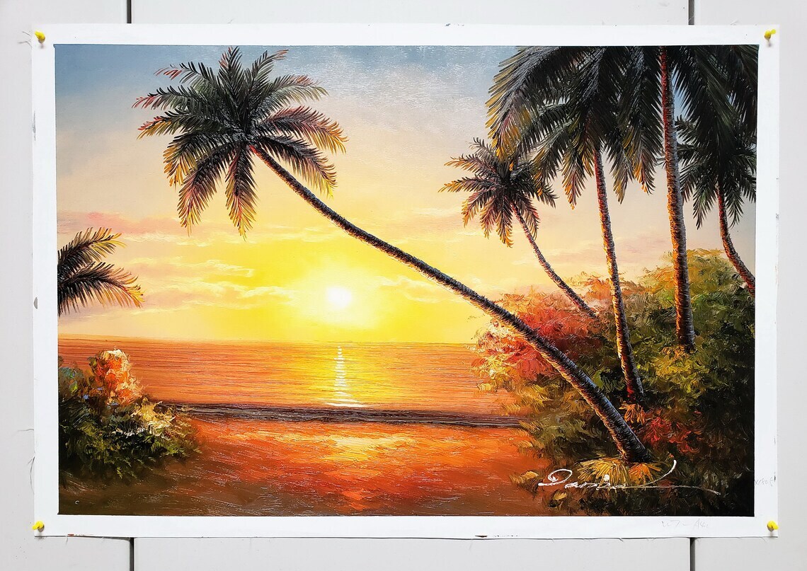 Sunset Palm Tree #6, 24×36, 100% Hand and 50 similar items