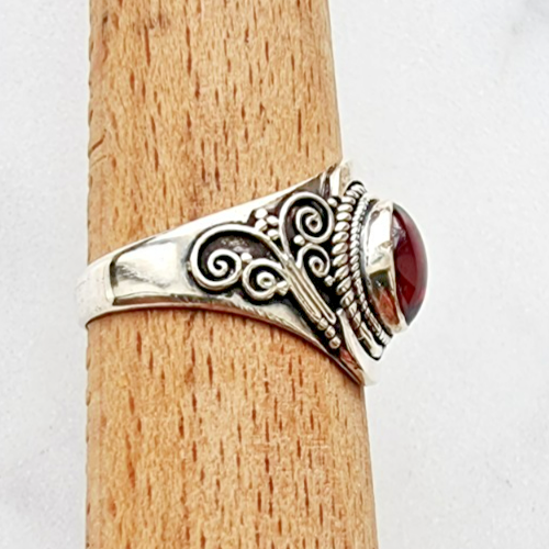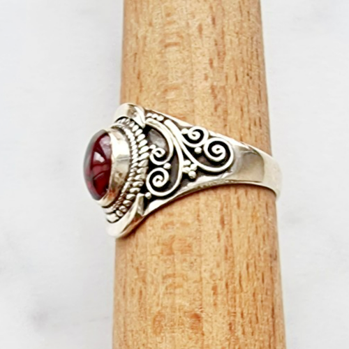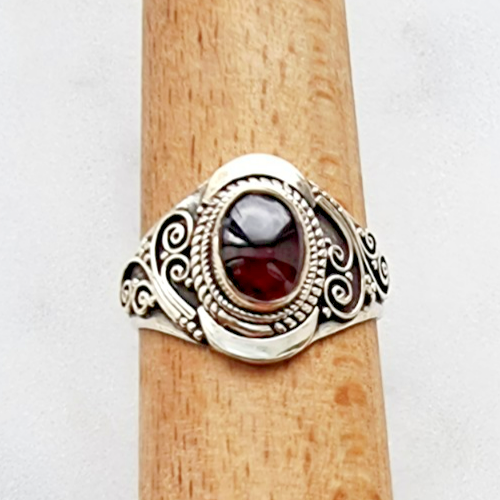 VINTAGE 925 STERLING SILVER OVAL 8x6 mm. GARNET FILIGREE RING SIZE 8