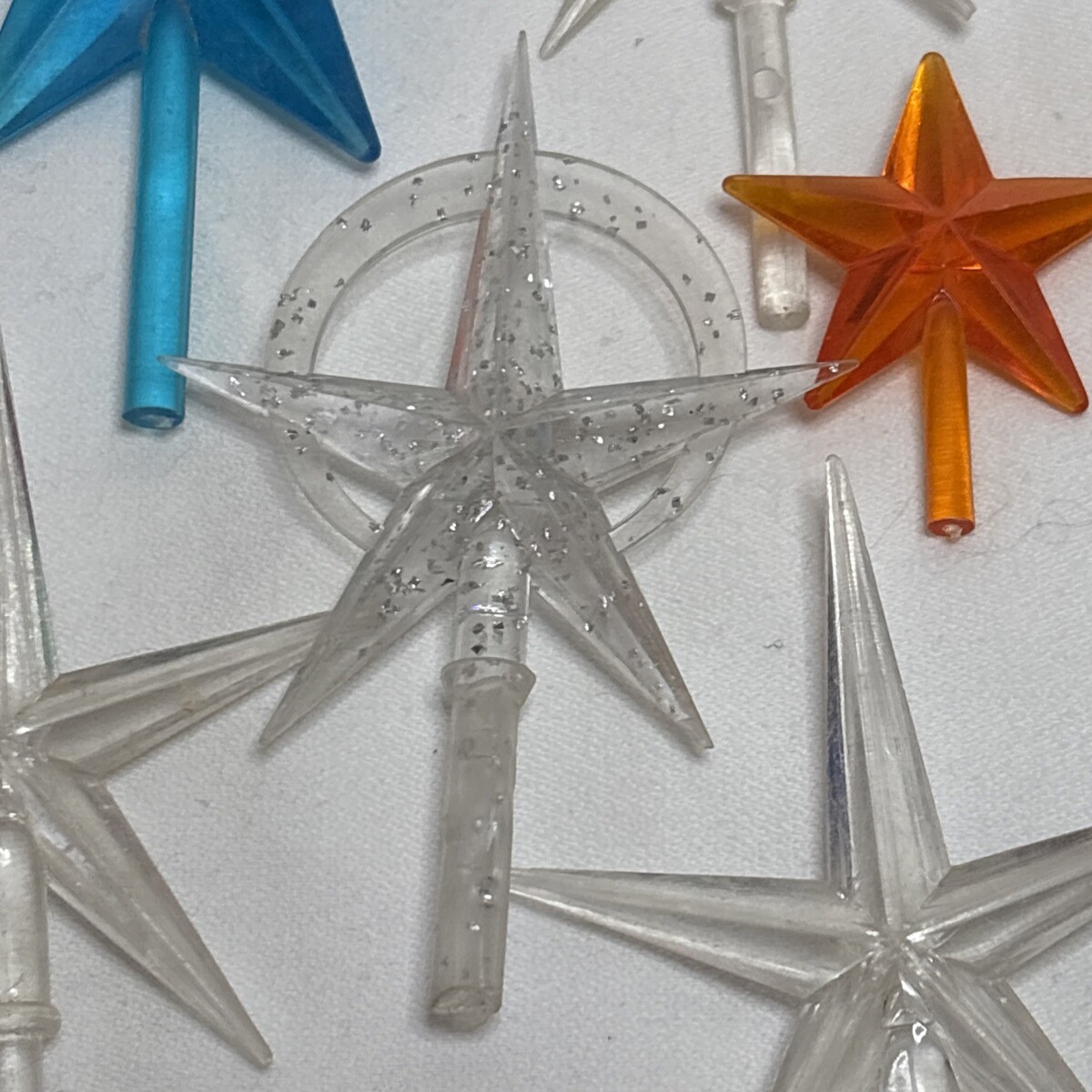 (10) Stars are 1.5" to 3.75" including the stem, largest is filled with glitter plus an orange and blue one