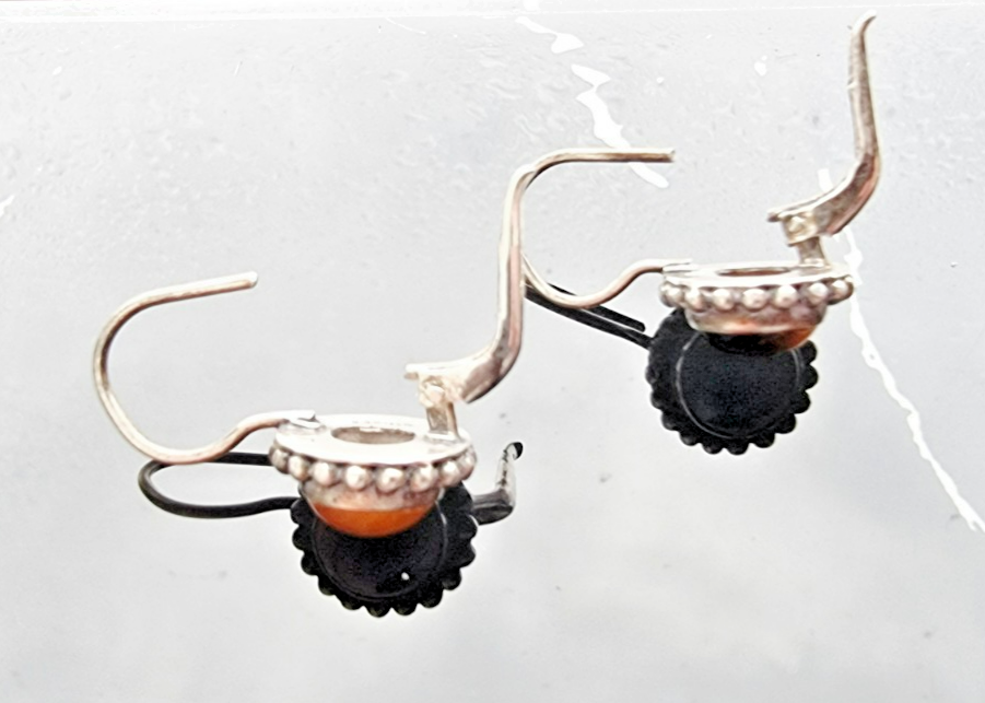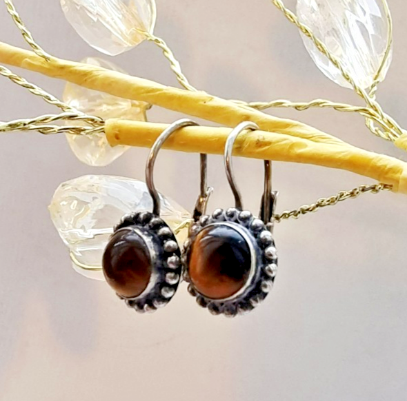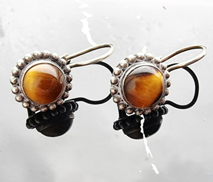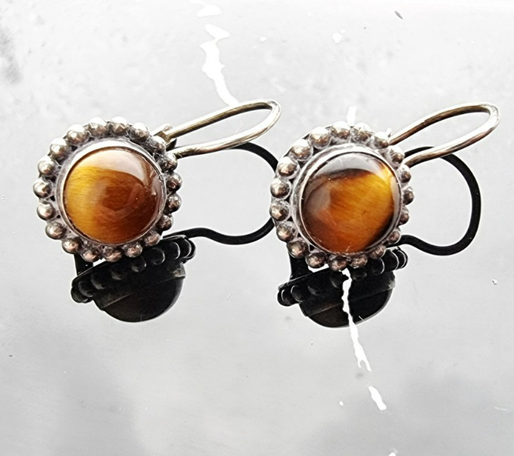 FAS VINTAGE 925 STERLING SILVER 8 mm. ROUND TIGER EYE HOOK EARRINGS
