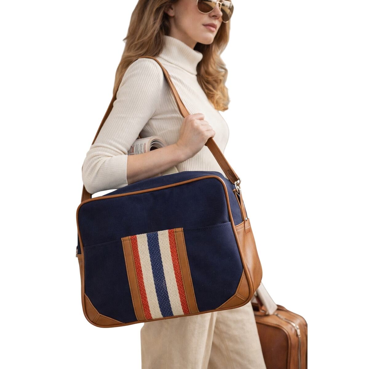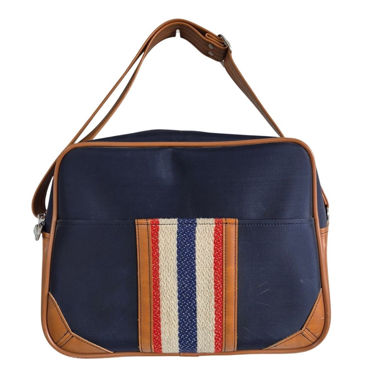 VTG 1970s American Luggage Airline Travel Bag Mod Blue Stripe Weekender