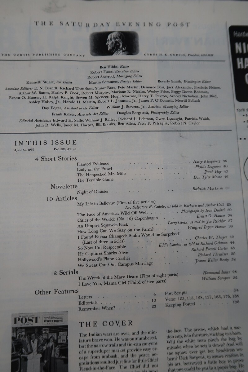 Vtg Saturday Evening Post Apr 14, '56 Life in Bellvue Sal Cutolo Rowdy Kid