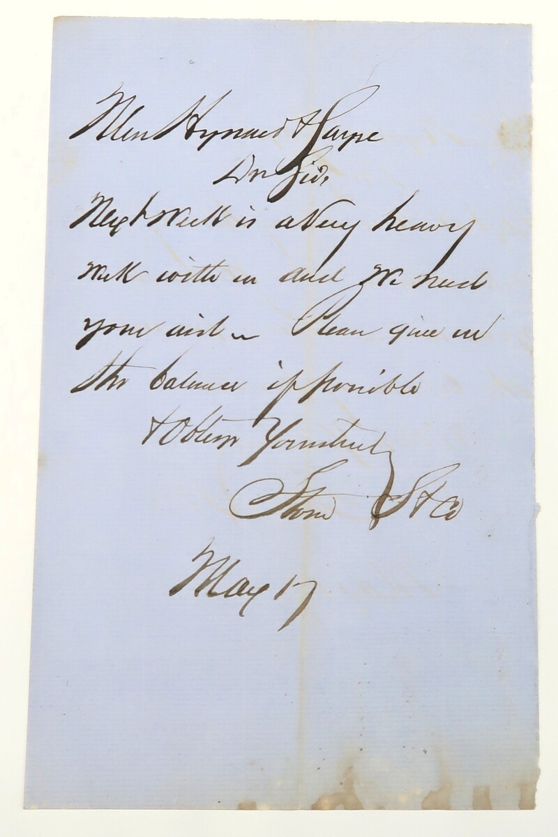 This very good condition antique letter from May16th appears to be discussing a business matter. I can only read small parts of it but with effort you could discern the contents more completely. Based on other letters from this collection, it appears to be from 1860