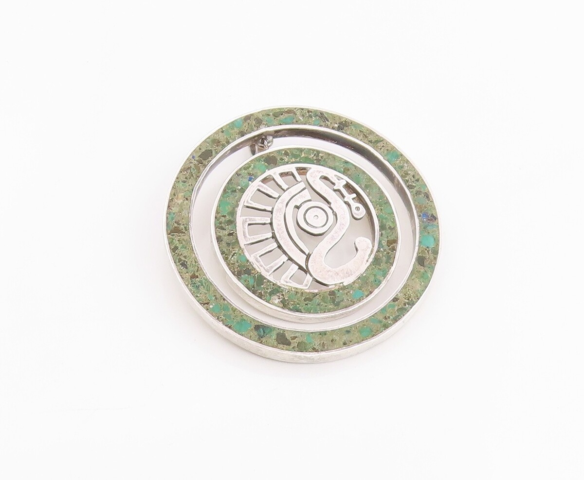 925 Sterling Silver Vintage Pendant MIGUEL MELENDEZ TAXCO Turquoise PT26038