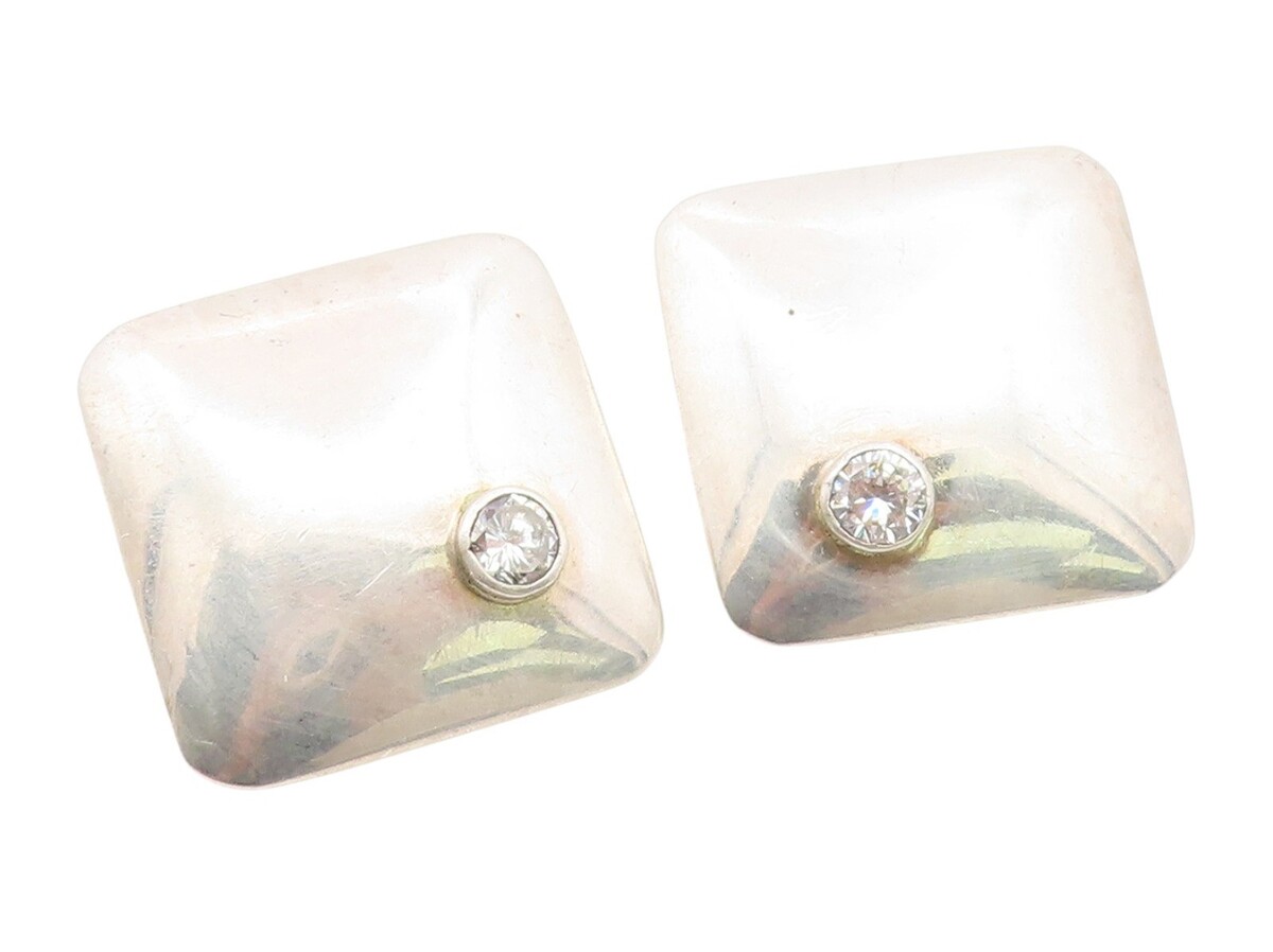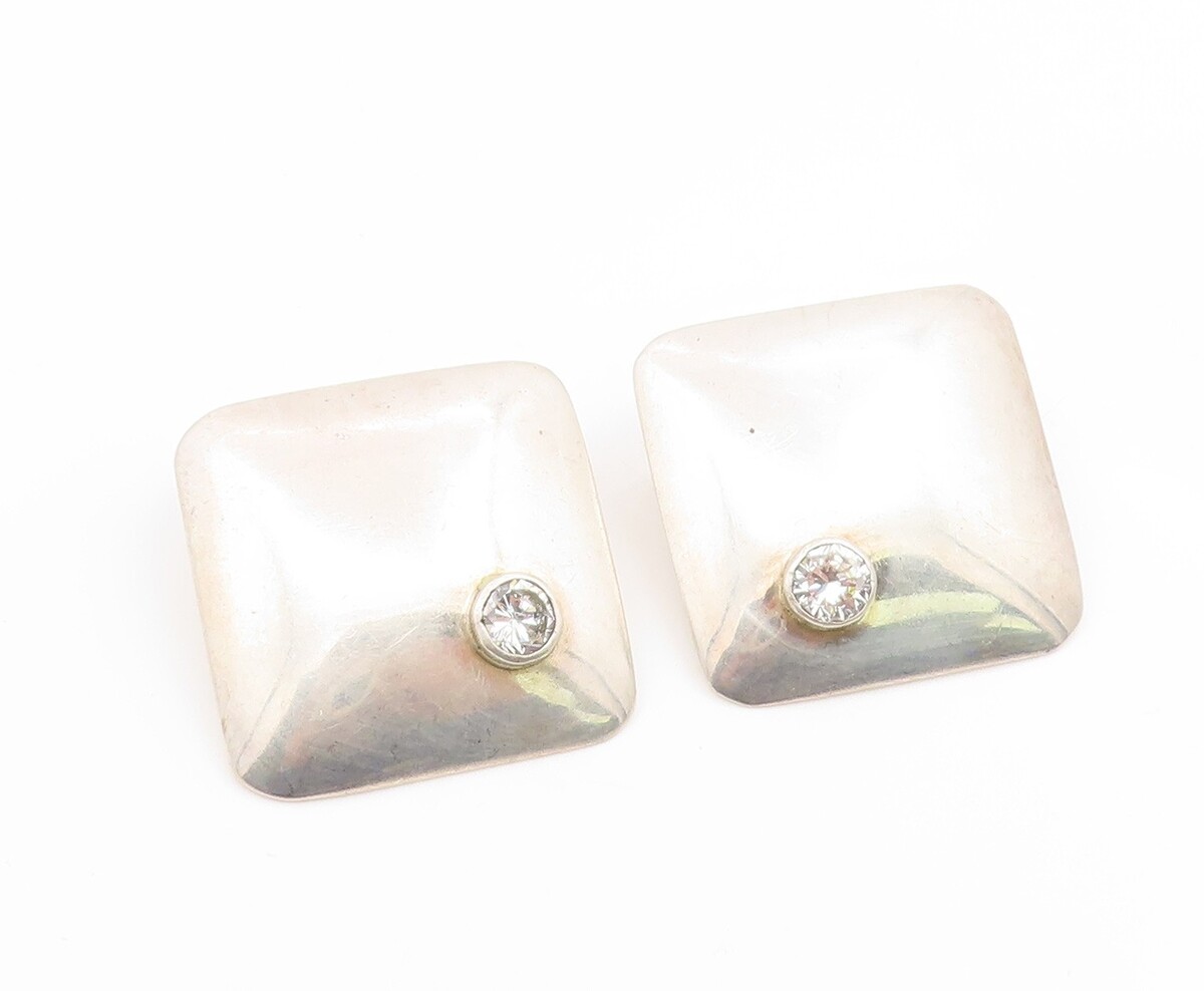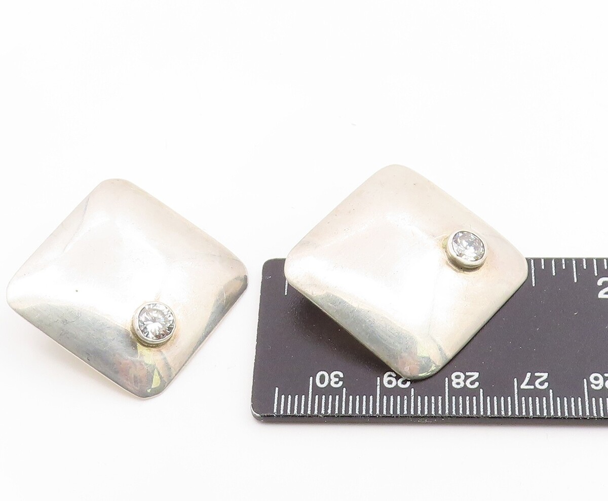 925 Sterling Silver Vintage Earrings DULCE MEXICO CZ Geometric Square EG14204
