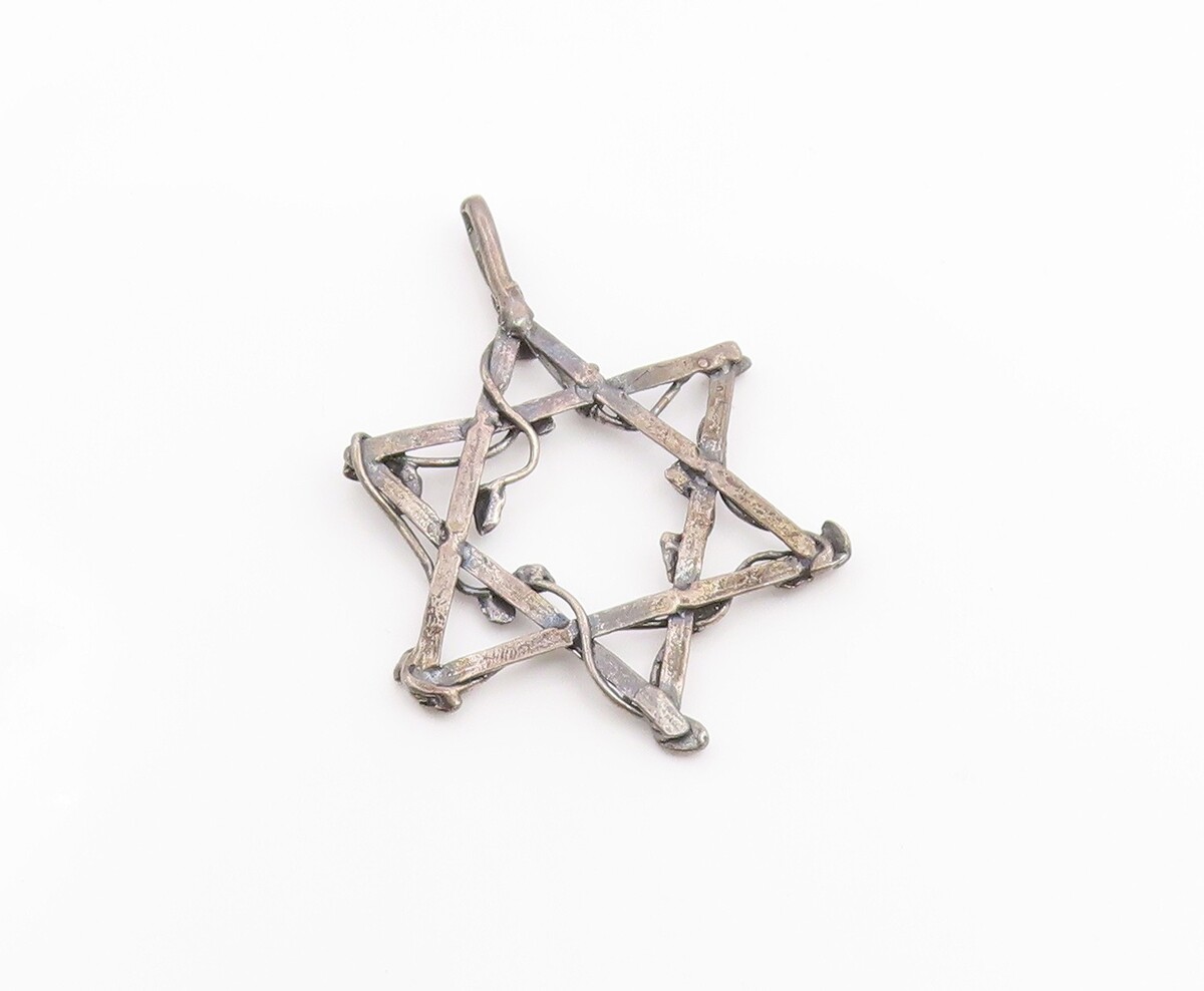 925 Sterling Silver Vintage Pendant Grapevine Star Of David Motif Charm PT26002