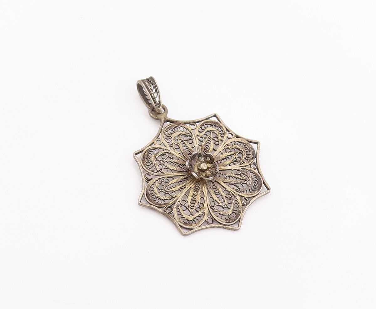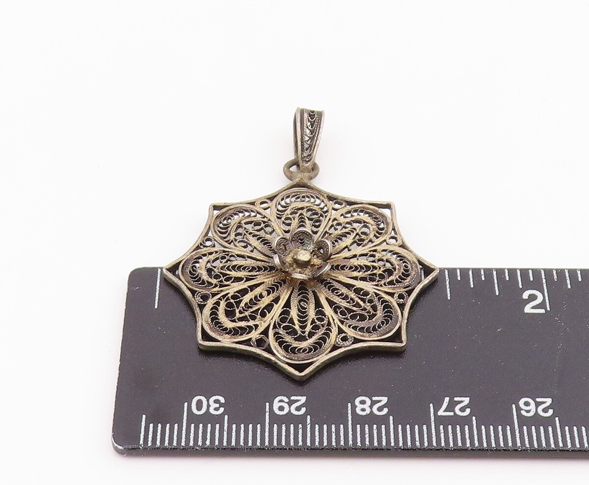 925 Sterling Silver Vintage Pendant Intricate Filigree Floral Blossom PT26009