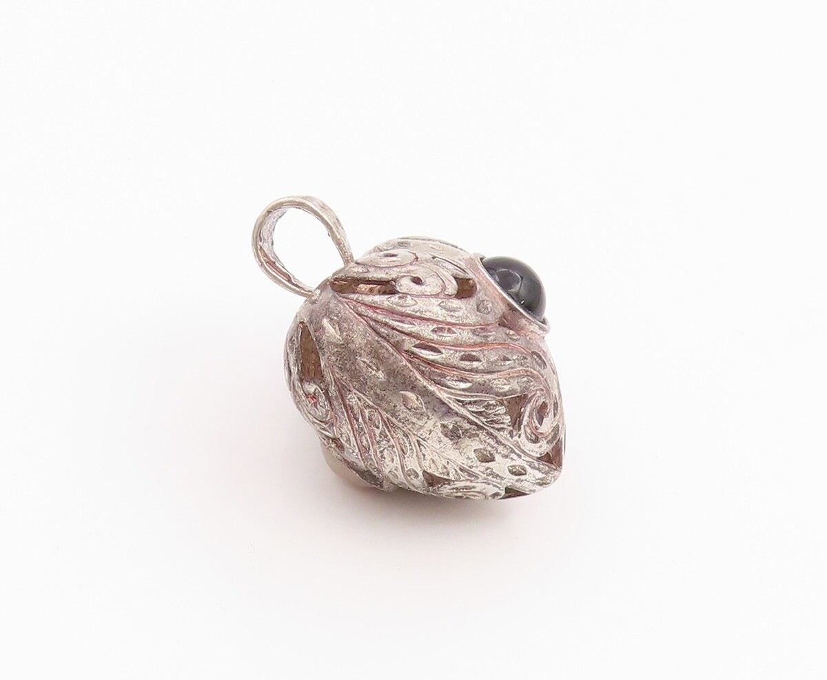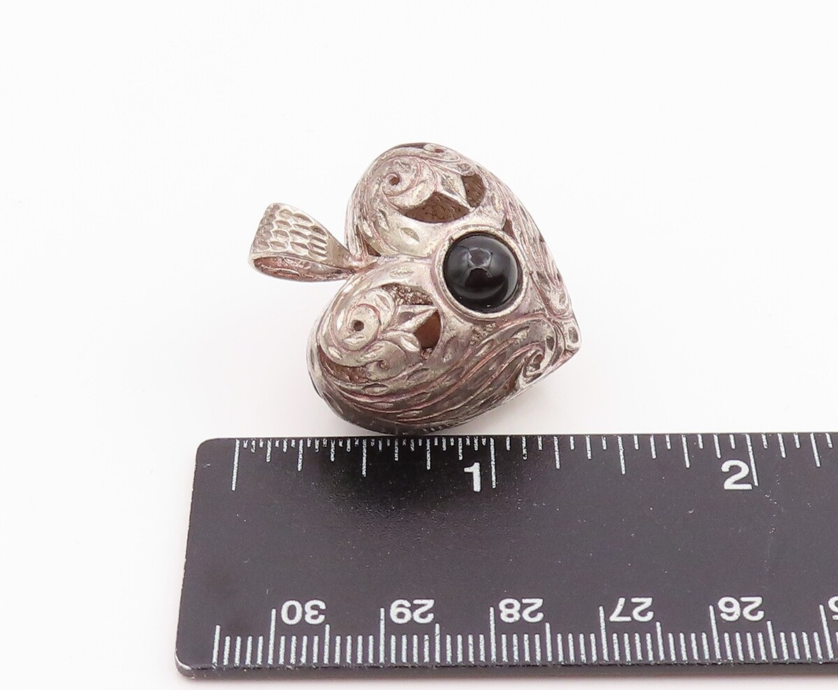 925 Sterling Silver Vintage Pendant Round Onyx & Opal Etched Love Heart PT26028