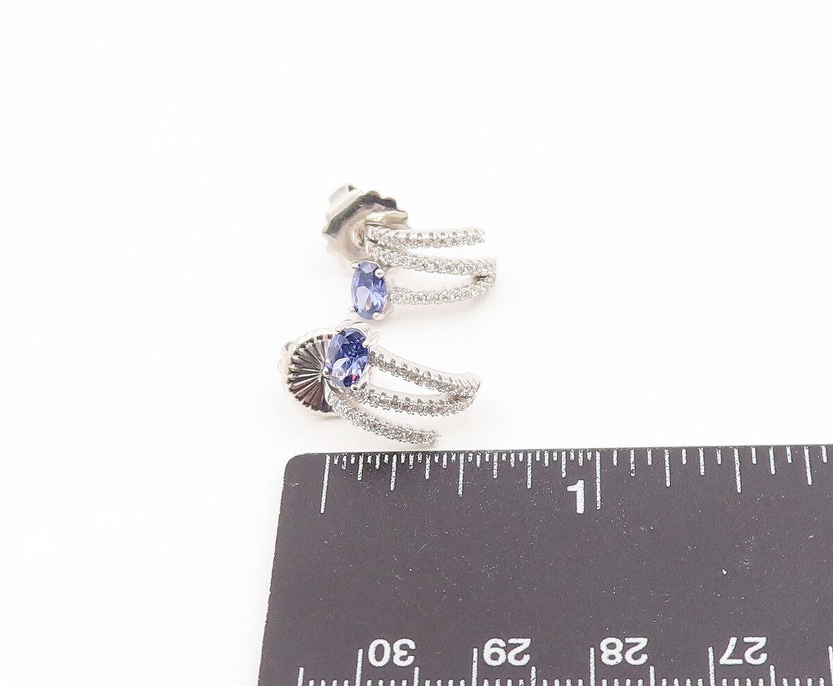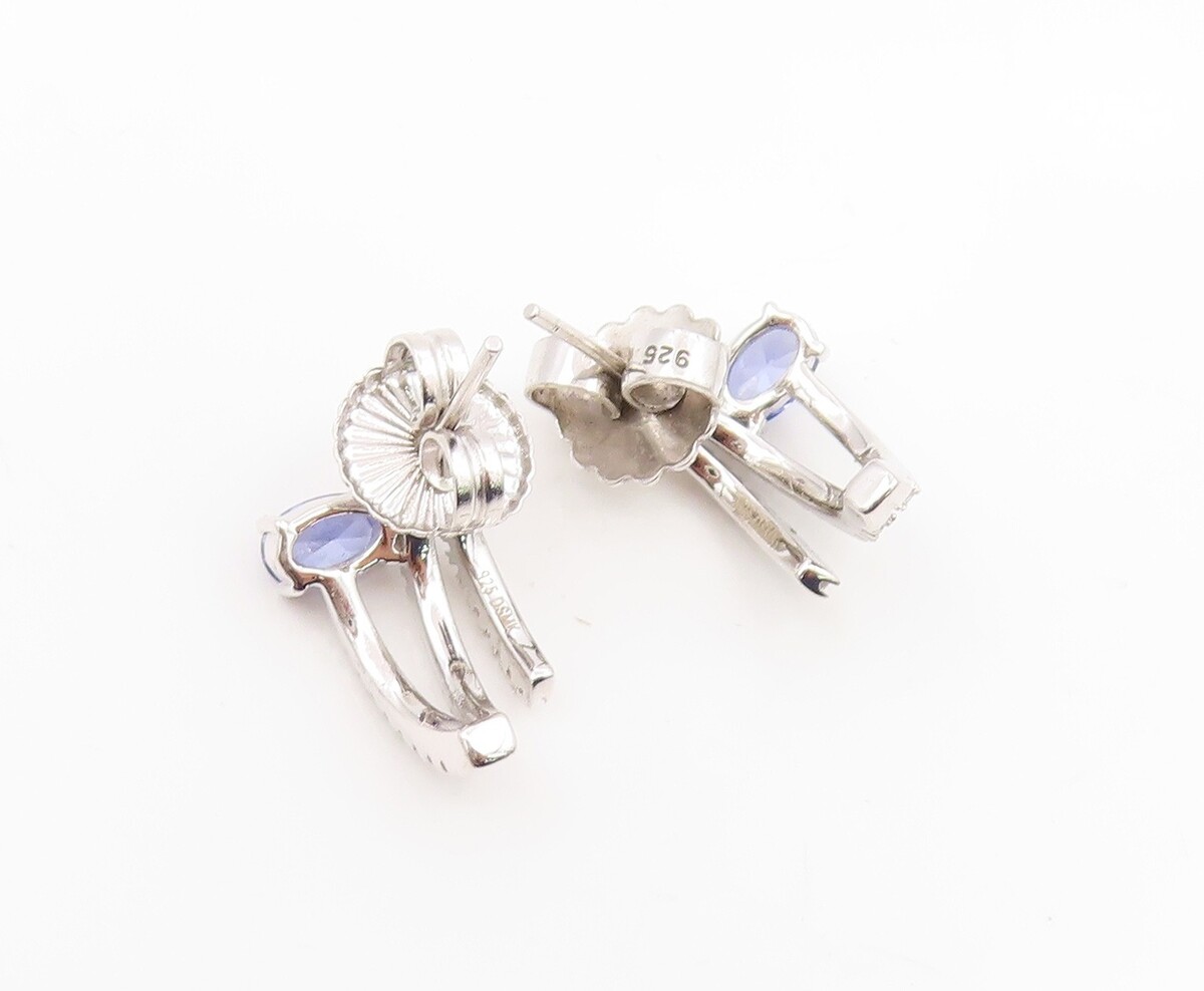 925 Sterling Silver Vintage Earrings Elegant Oval Tanzanite & CZ Stud EG14196