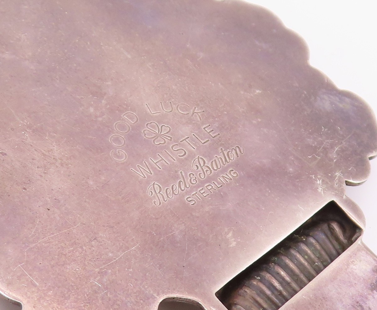 925 Sterling Silver Vintage Pendant REED & BARTON Lucky Clover Whistle PT26018
