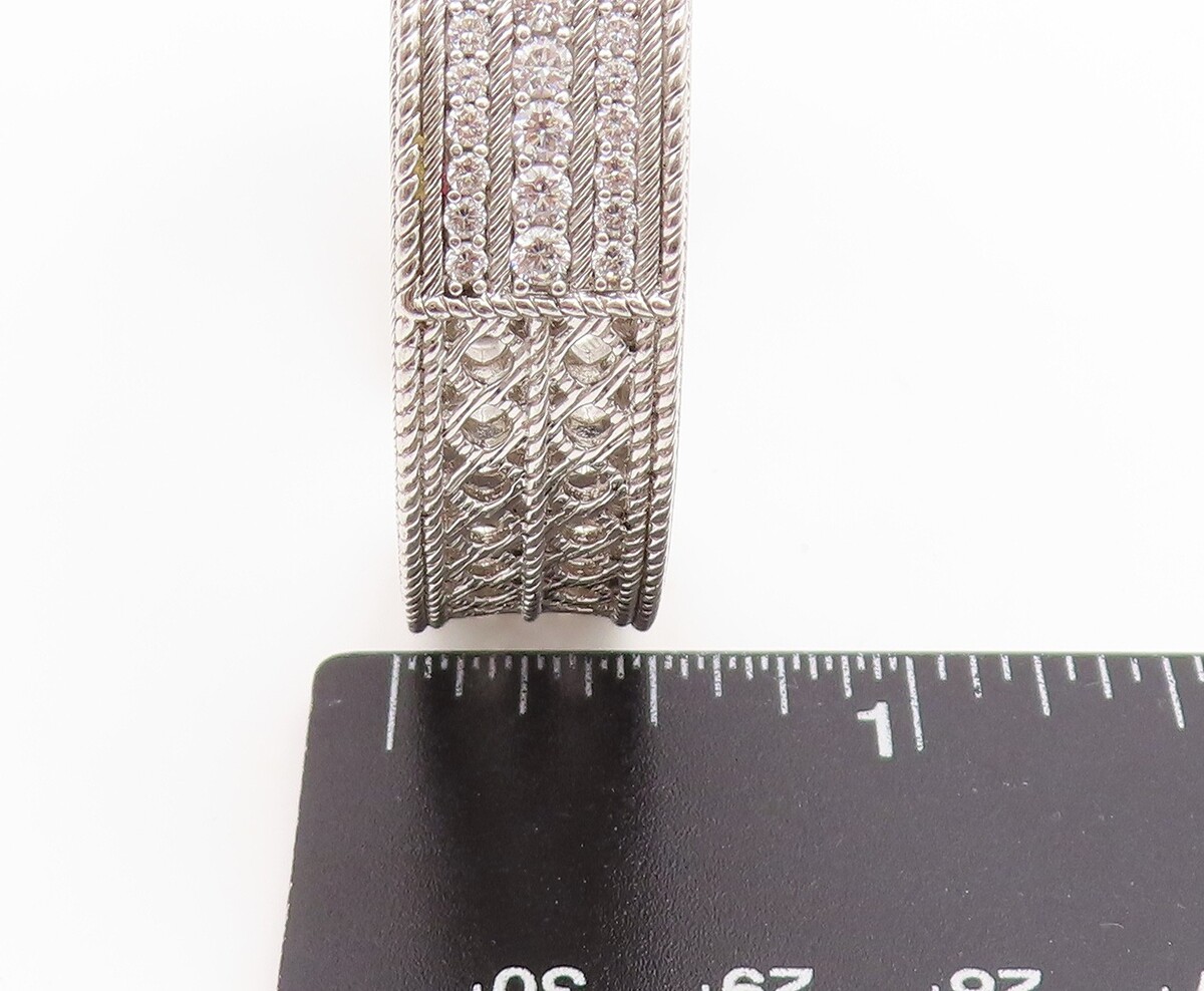 925 Sterling Silver Vintage Bracelet JUDITH RIPKA Elegant CZ Wide Cuff BT11927