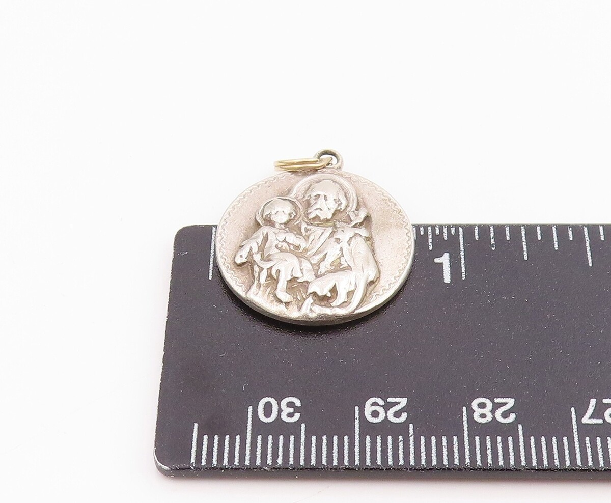 925 Sterling Silver Vintage Pendant St. Joseph & Child Jesus Religious PT25996