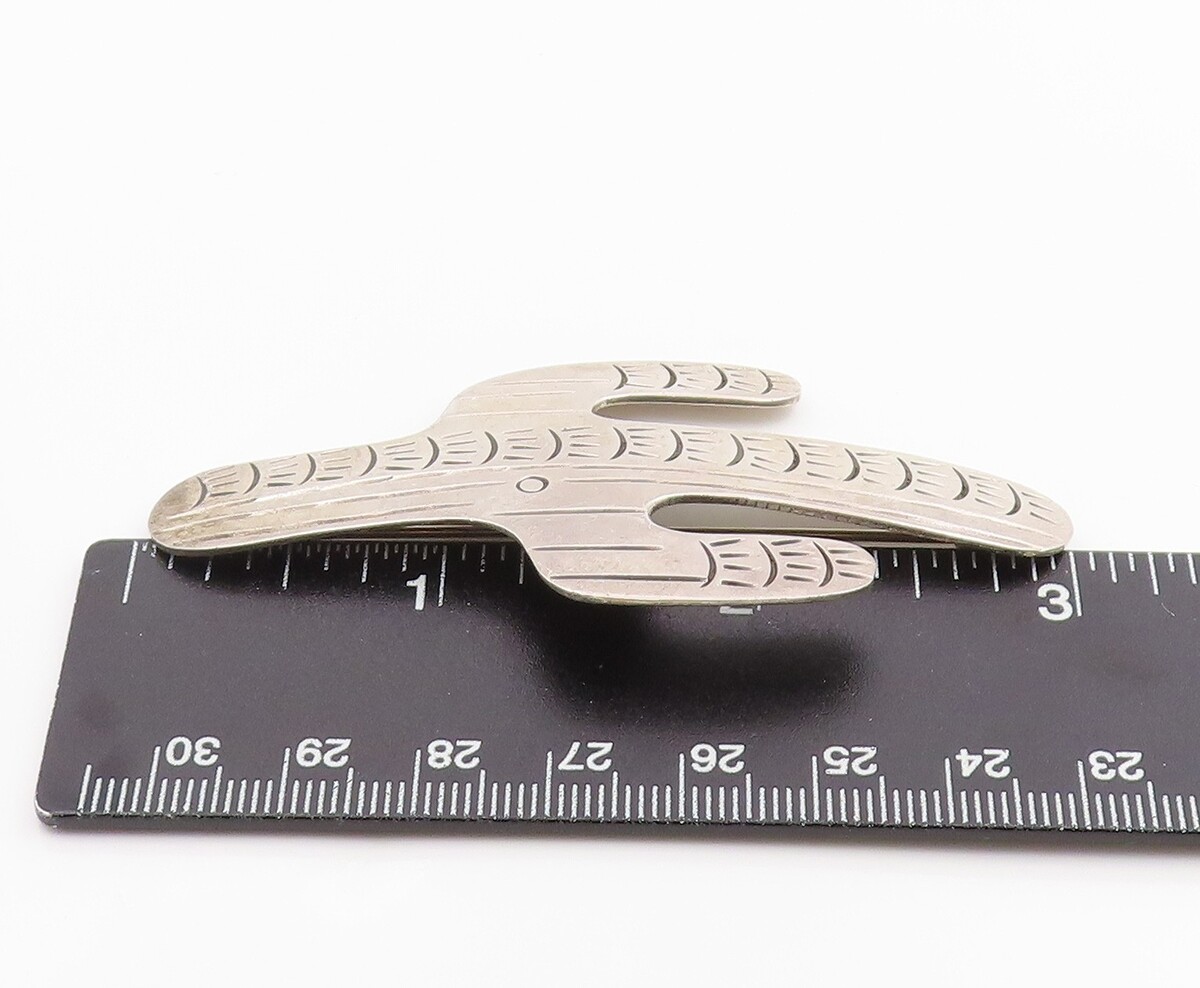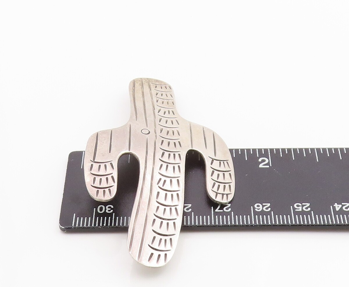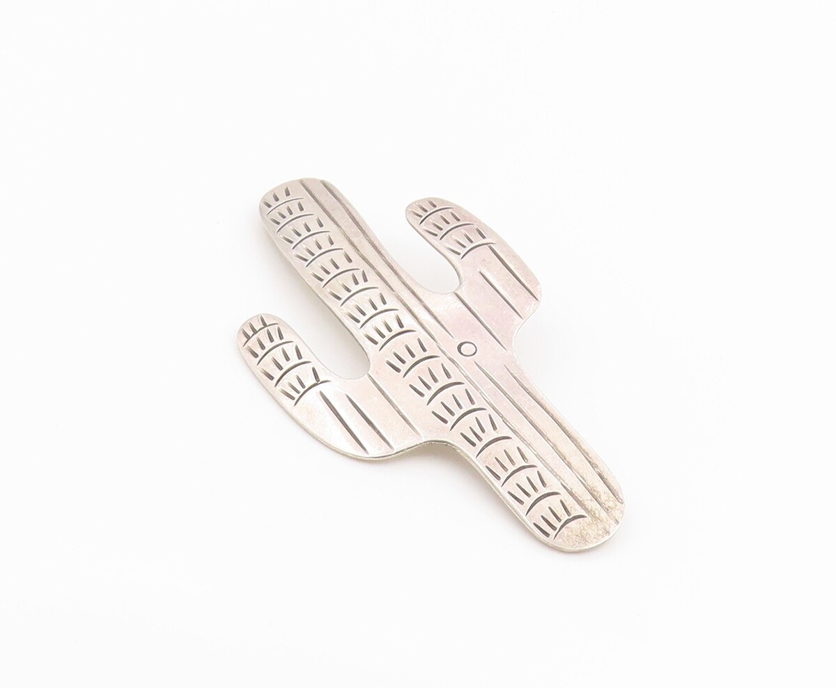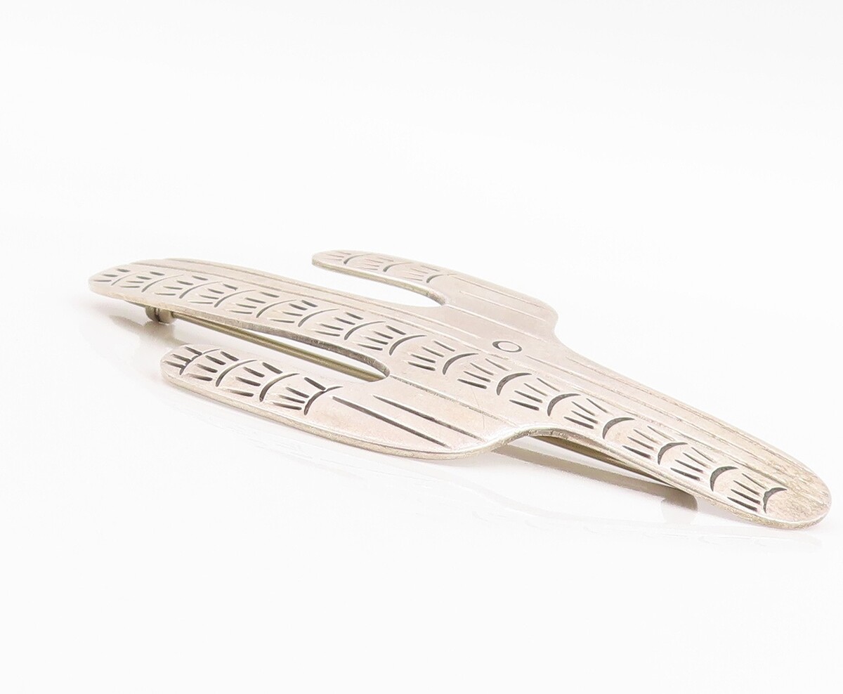 925 Sterling Silver Vintage Brooch Pin MEXICO Etched Cactus Cutout BP12477