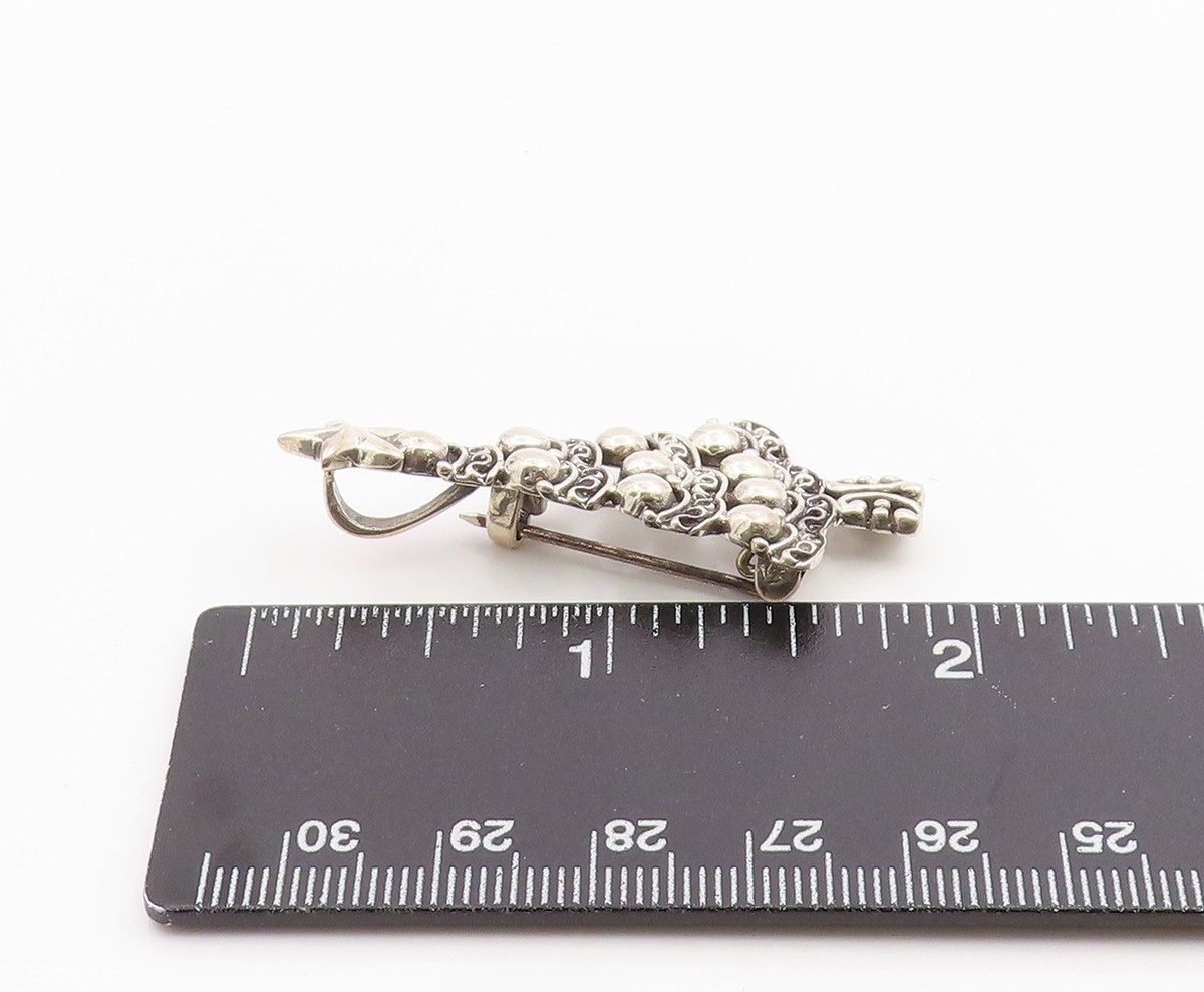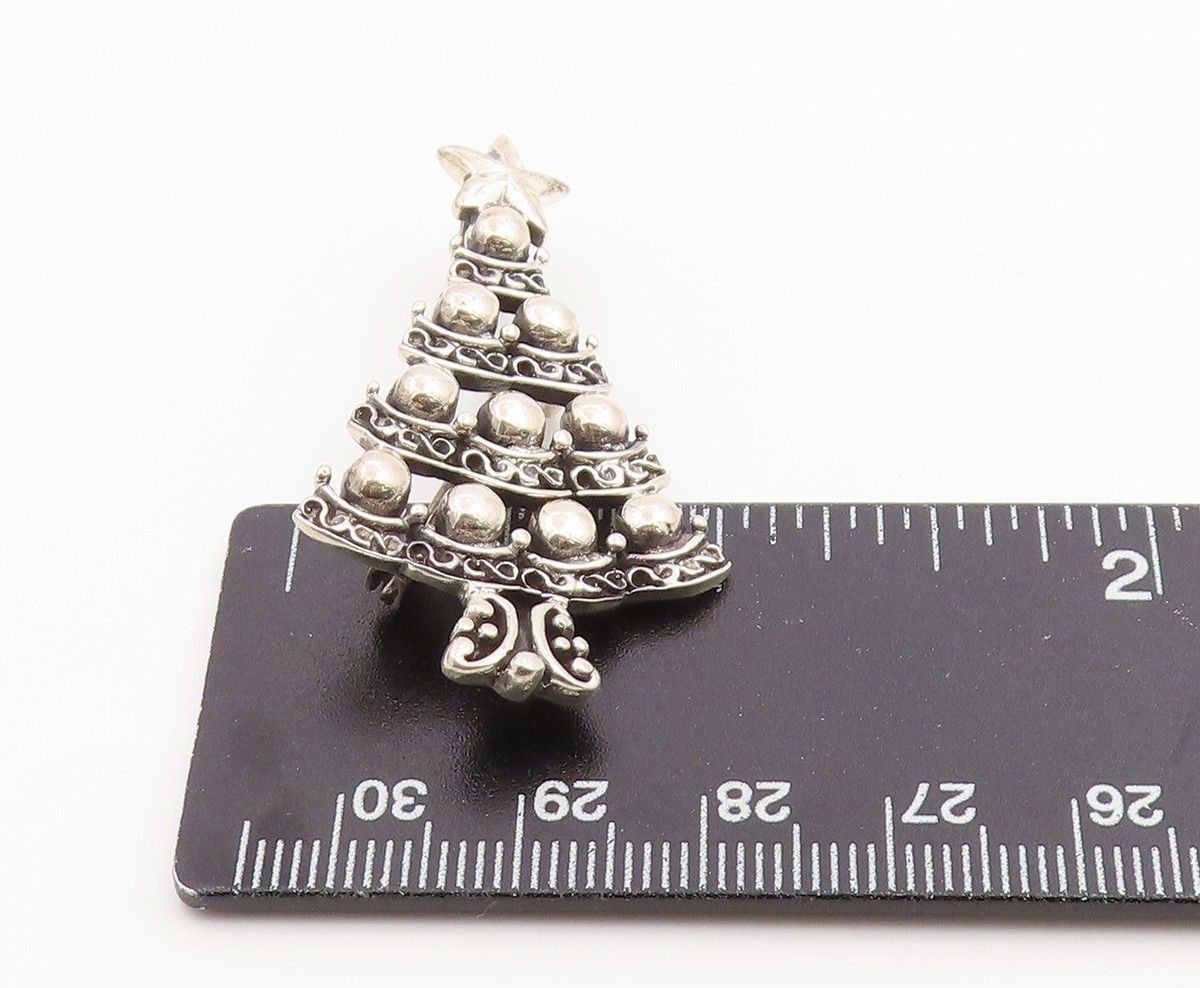 925 Sterling Silver Vintage Brooch Pin Classic Christmas Tree With Balls BP12454