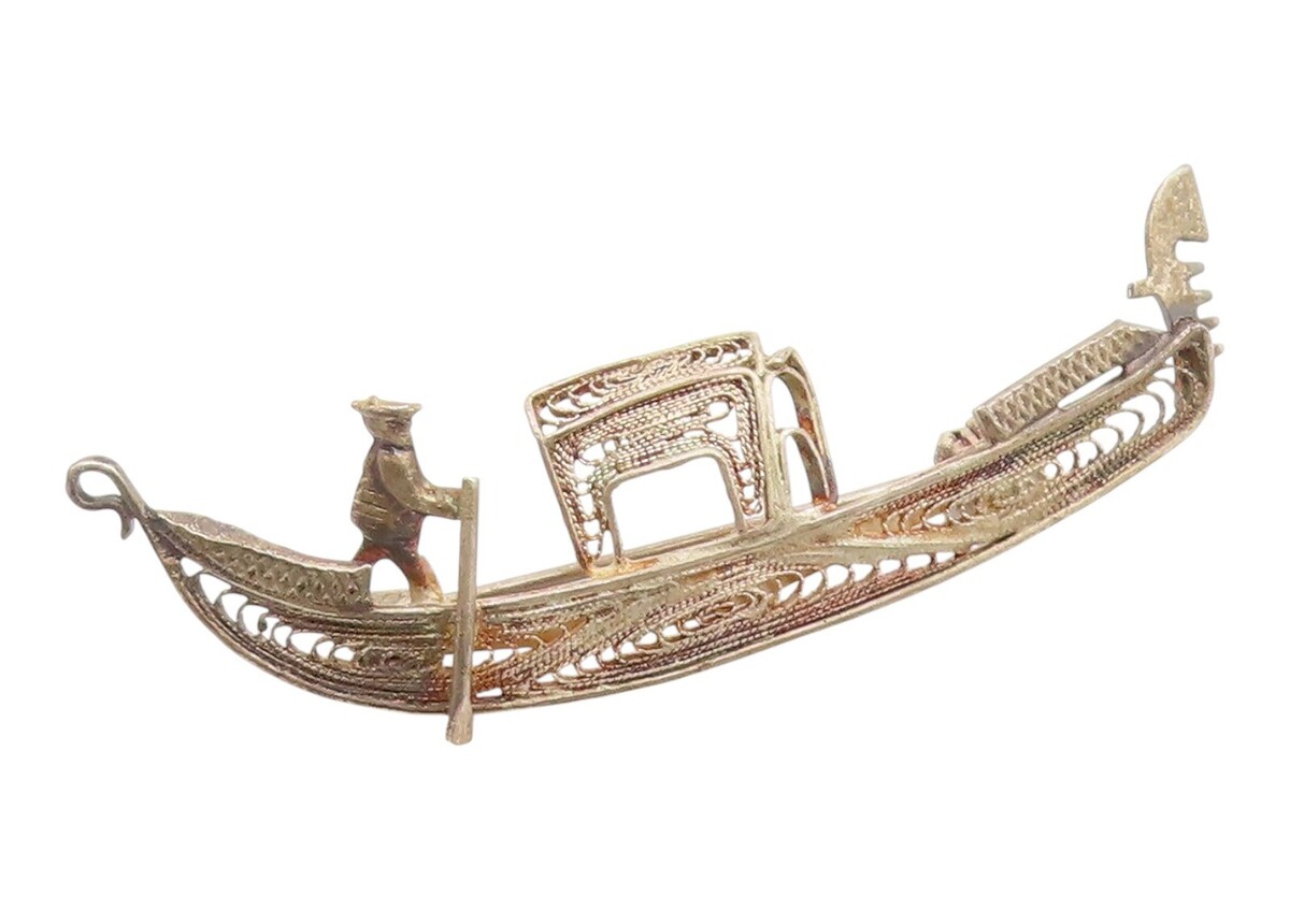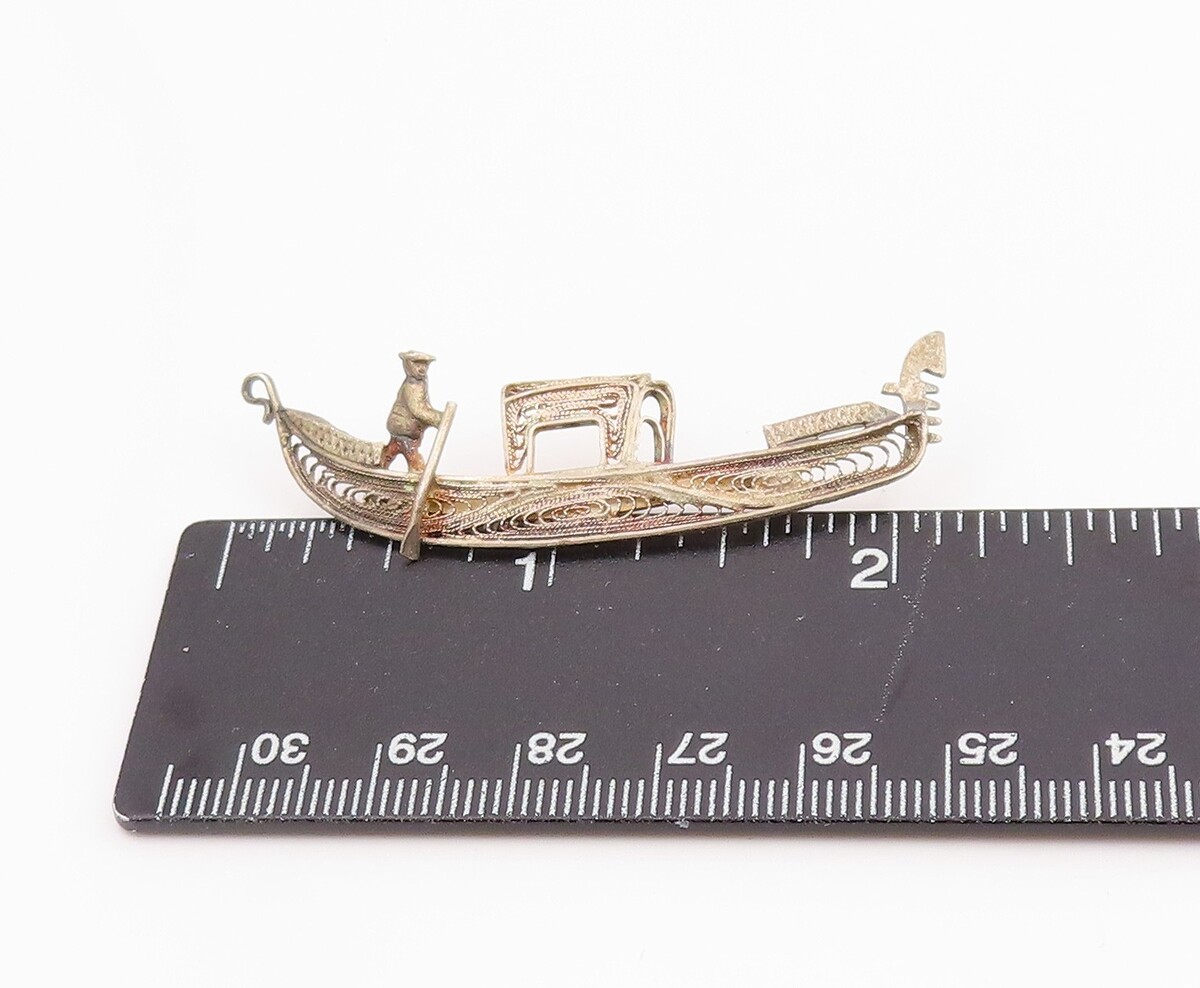 925 Sterling Silver Vintage Brooch Pin Filigree Miniature Gondola Boat BP12450