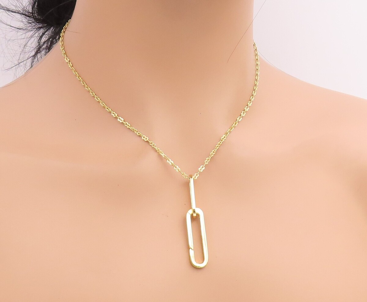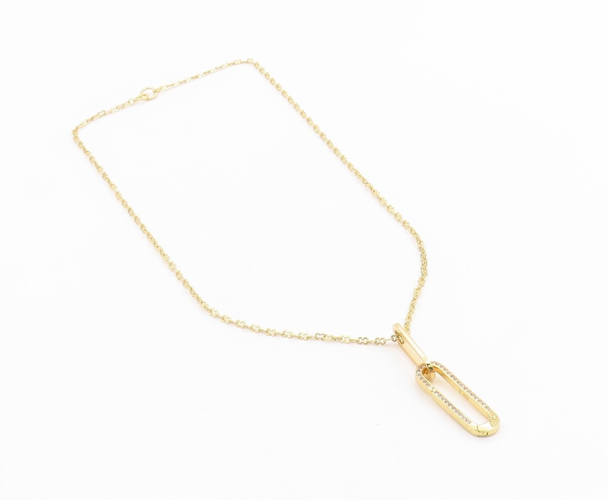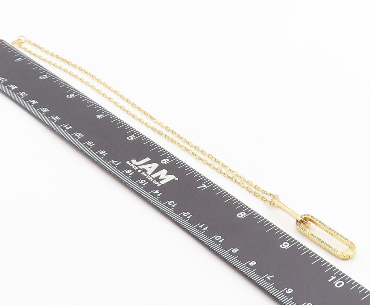 925 Sterling Silver Vintage Necklace Gold Plated CZ Pave Paperclip Drop NE4869