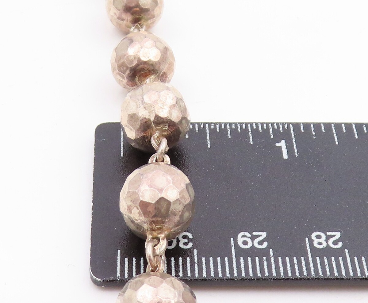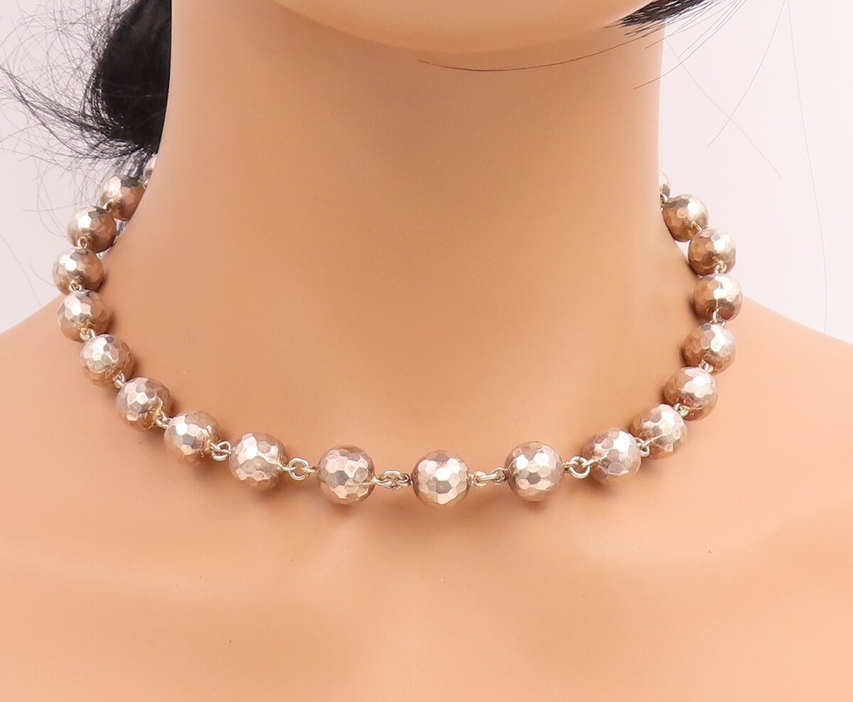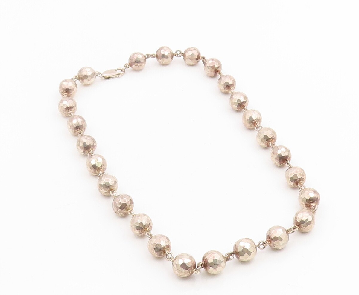 925 Sterling Silver Vintage Necklace Modernist Faceted Spherical Bead NE4872