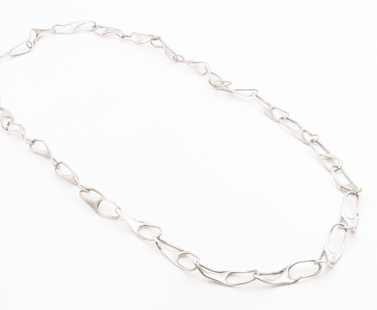 925 Sterling Silver Vintage Necklace BRUNEL Sculptural Link Chain NE4881