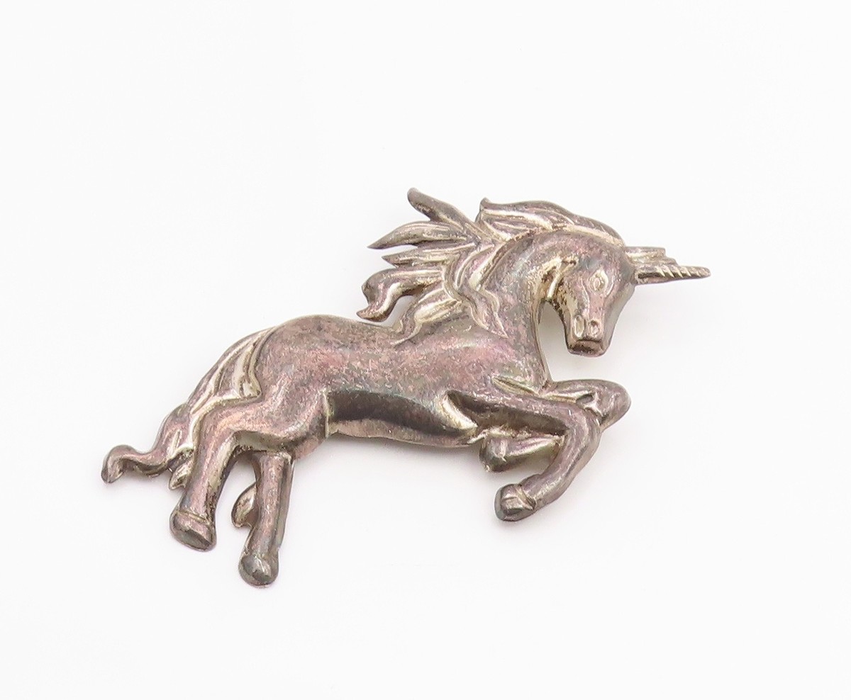 925 Sterling Silver Vintage Brooch Pin MEXICO Large Mystical Unicorn BP12480