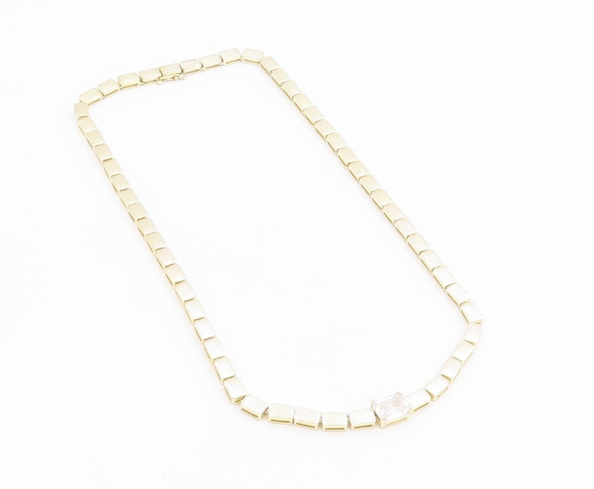 925 Sterling Silver Vintage Necklace Gold Plated CZ Geometric Collar NE4868