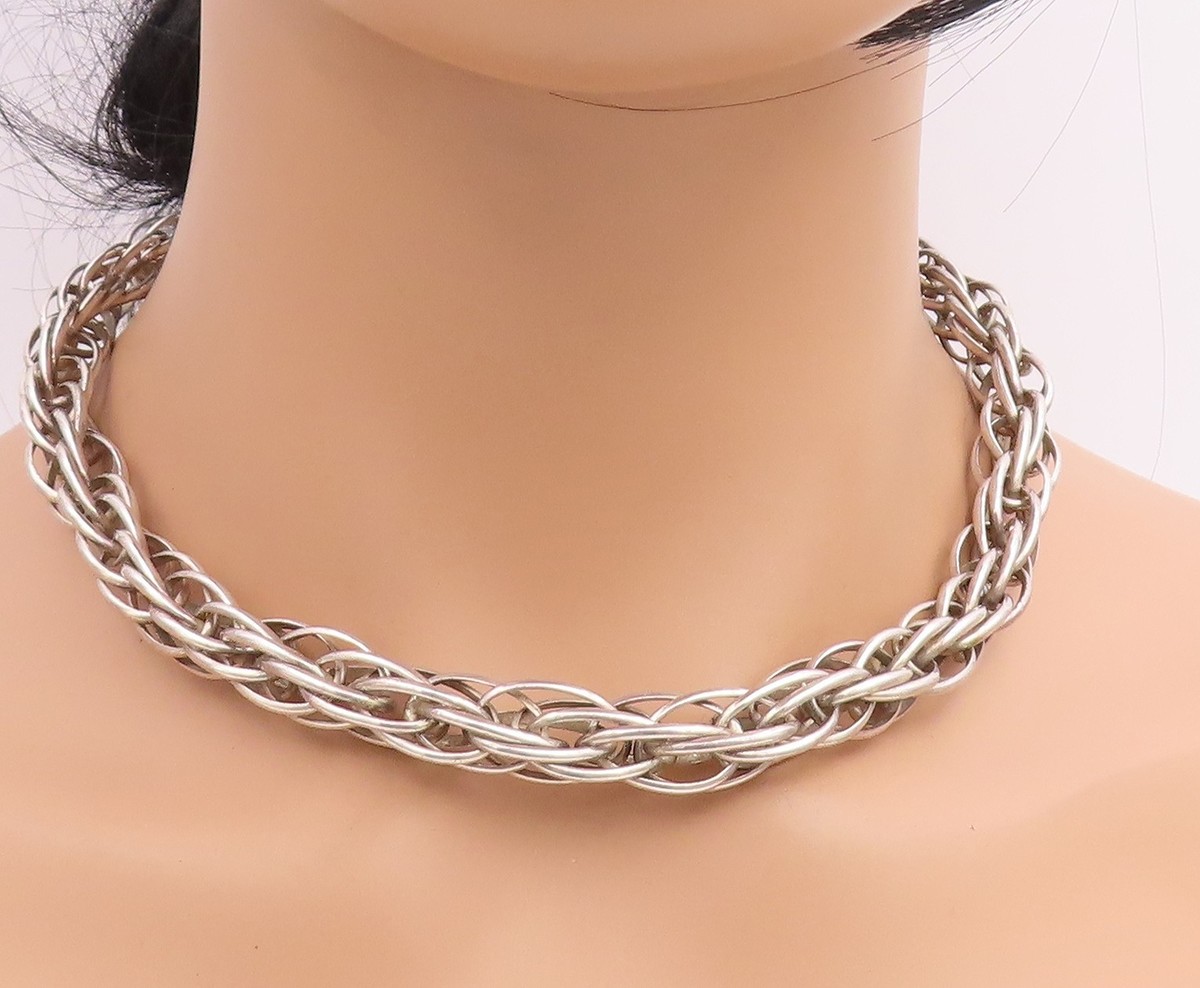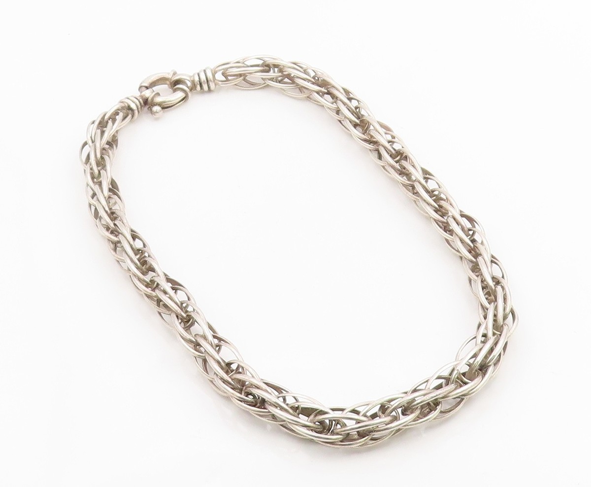 925 Sterling Silver Vintage Necklace SUARTI BALI Intertwined Foxtail Link NE4877