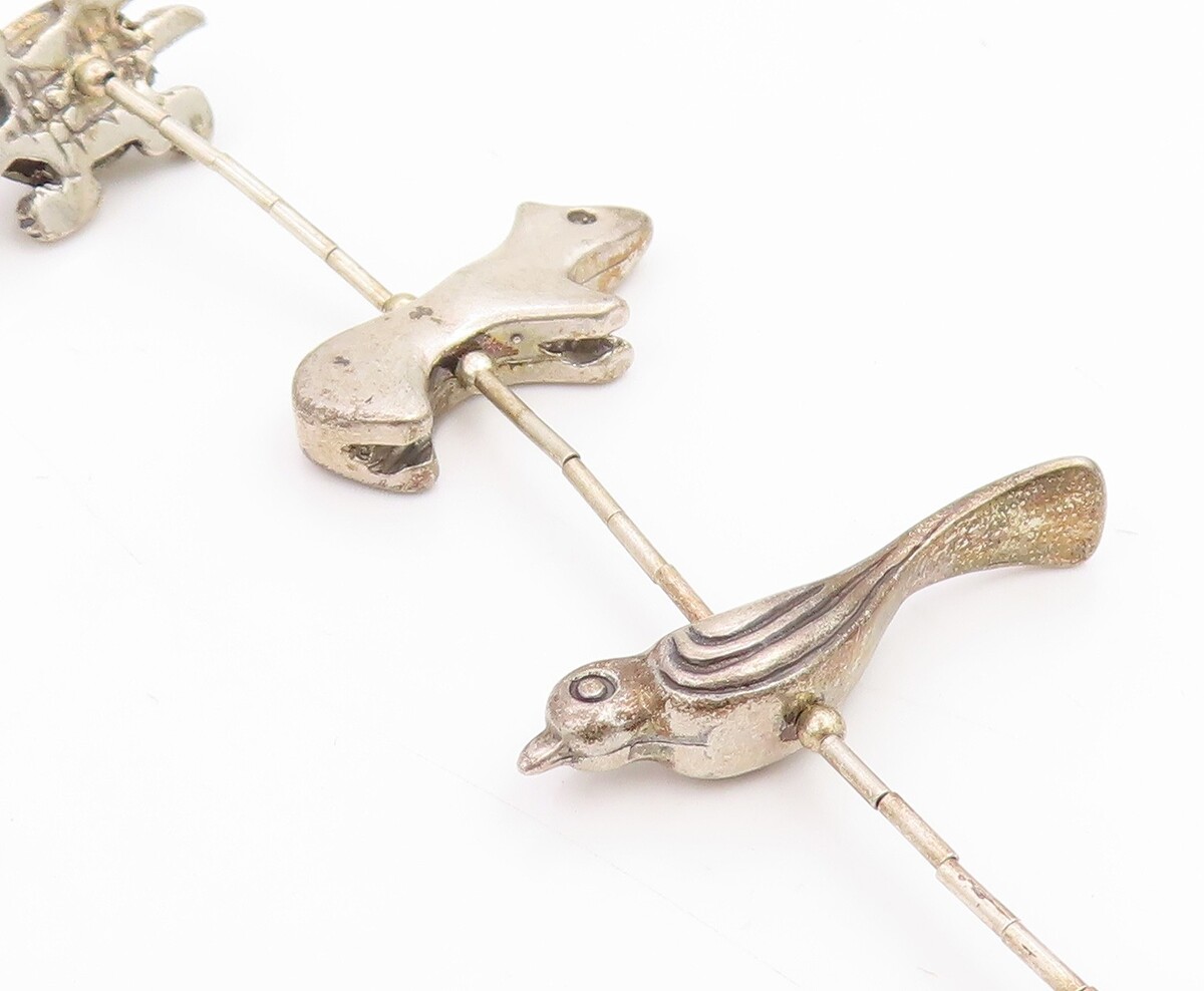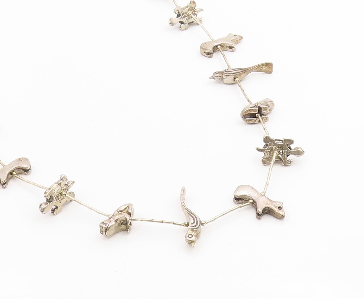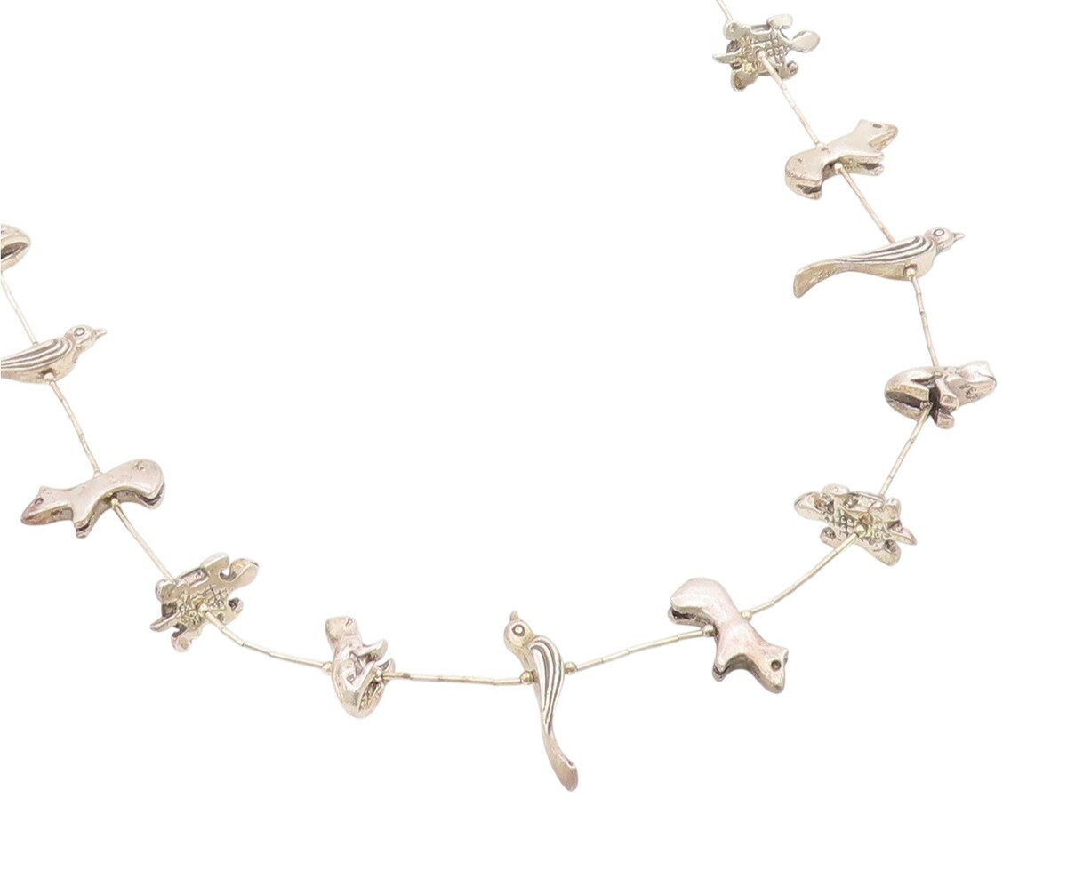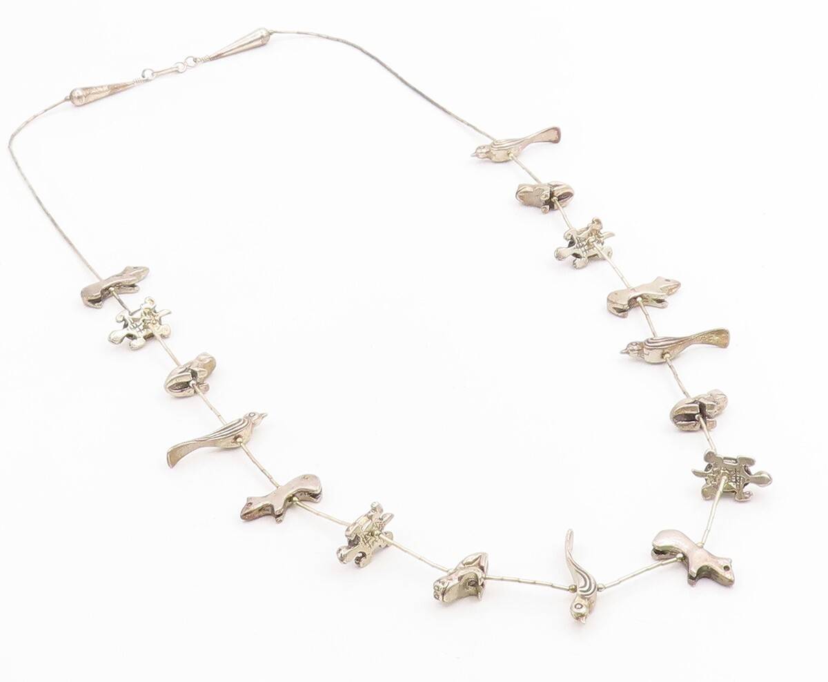 925 Sterling Silver Vintage Necklace NAVAJO ZUNI Animal Fetish Chain NE4878