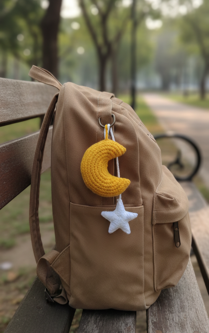 Handmade Crochet Moon & Star Keychain – Cute Bag Charm Gift