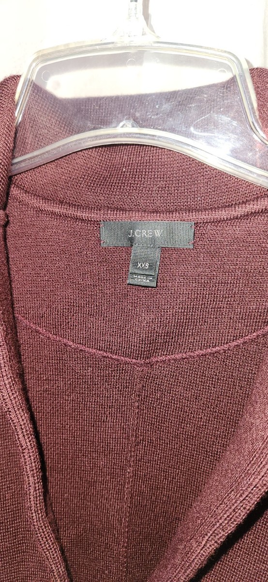 Womens J Crew XXS 2 Button Long Sleeve Sweather Cardigan Maroon Marino Wool