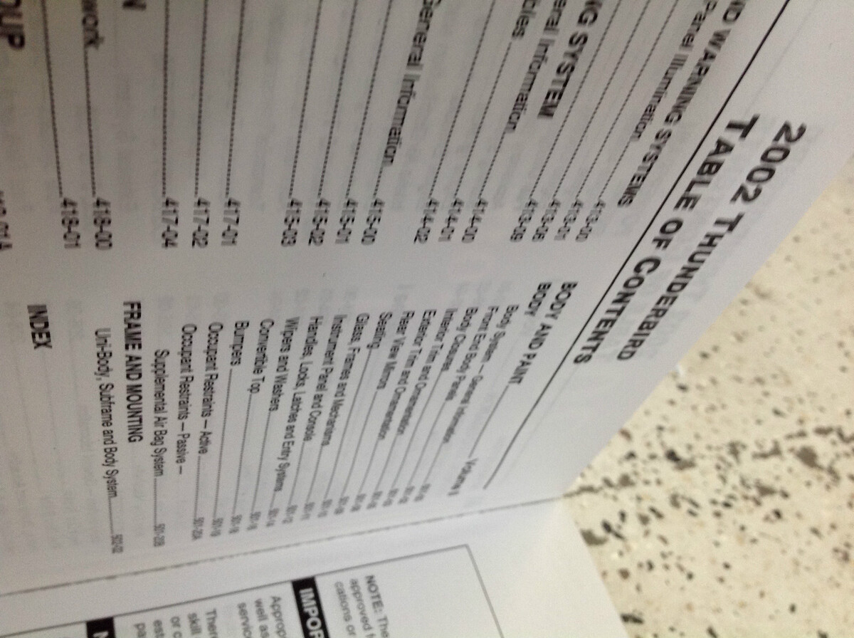 This manual is published by Ford, and are the same books the Ford technicians/mechanics use to service the THUNDERBIRDS