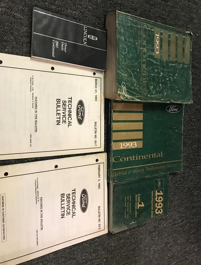 1993 Manuale di servizio Lincoln Continental, Manuale per la risoluzione dei problemi elettrici e del vuoto, Manuale delle specifiche, Manuale del proprietario e Bollettini tecnici