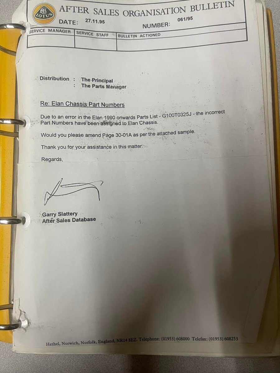 Lotus Elan Closed Anello LHD / USA Servizio Parti List Manuale OEM 1991 1992