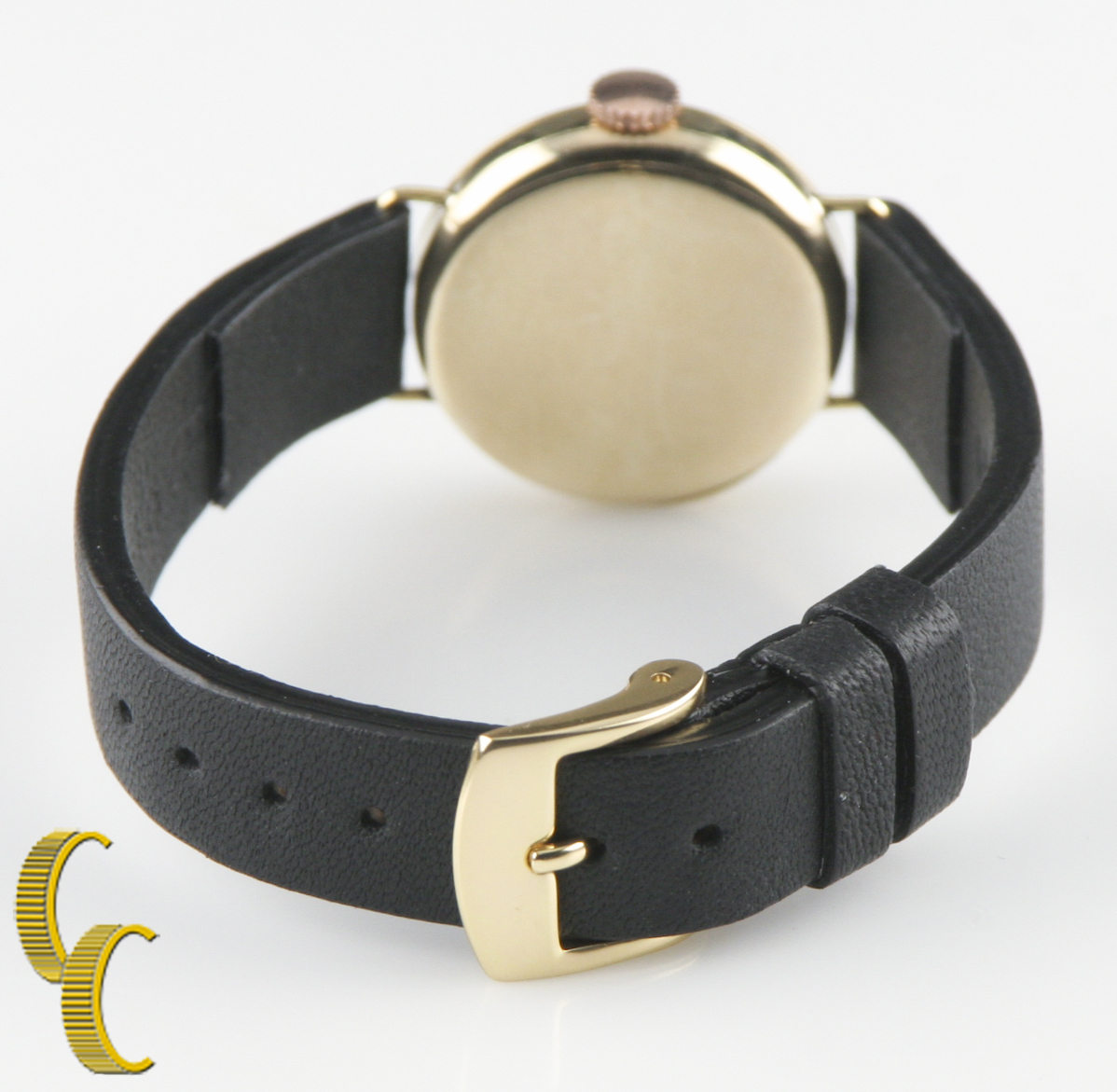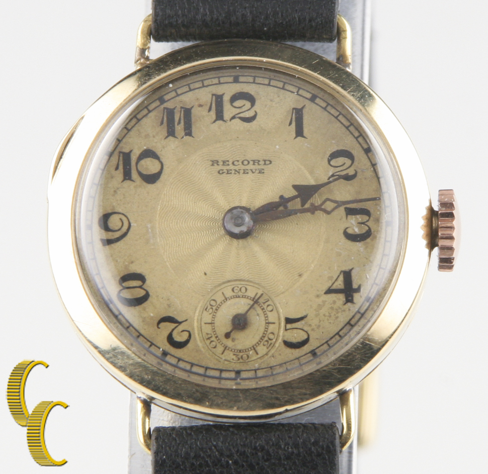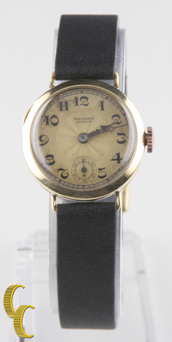 Record Geneve 14k Yellow Gold Vintage Hand-Winding Watch w/ Leather Band