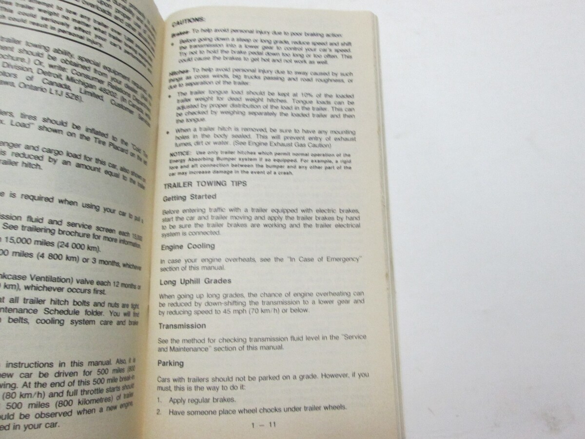 1982 Chevrolet Monte Carlo Proprietari Manuale Operativo Sicurezza Acqua Damaged